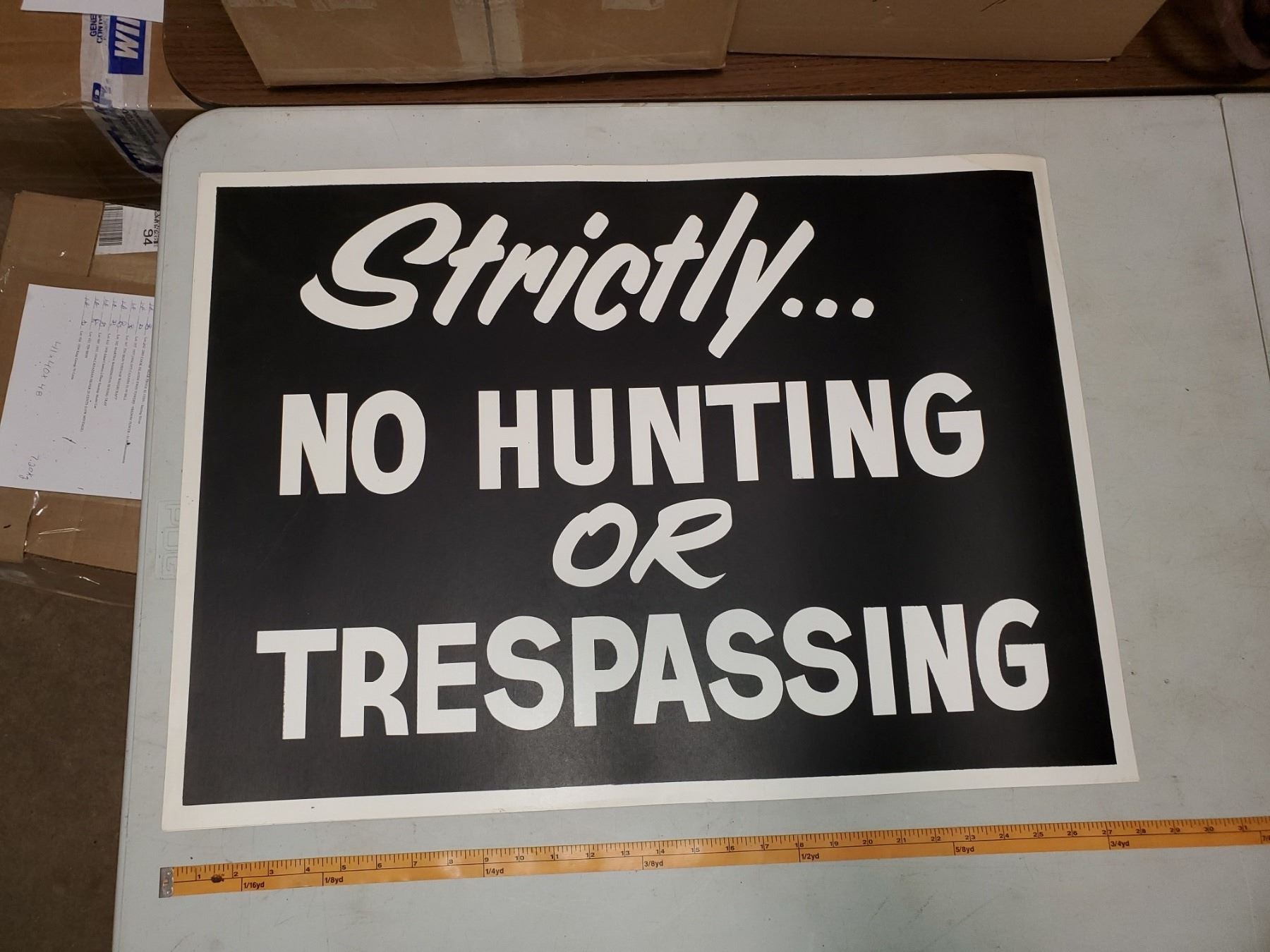 2 'NO HUNTING TRESPASSING' CARDBOARD SIGNS 28" X 20"