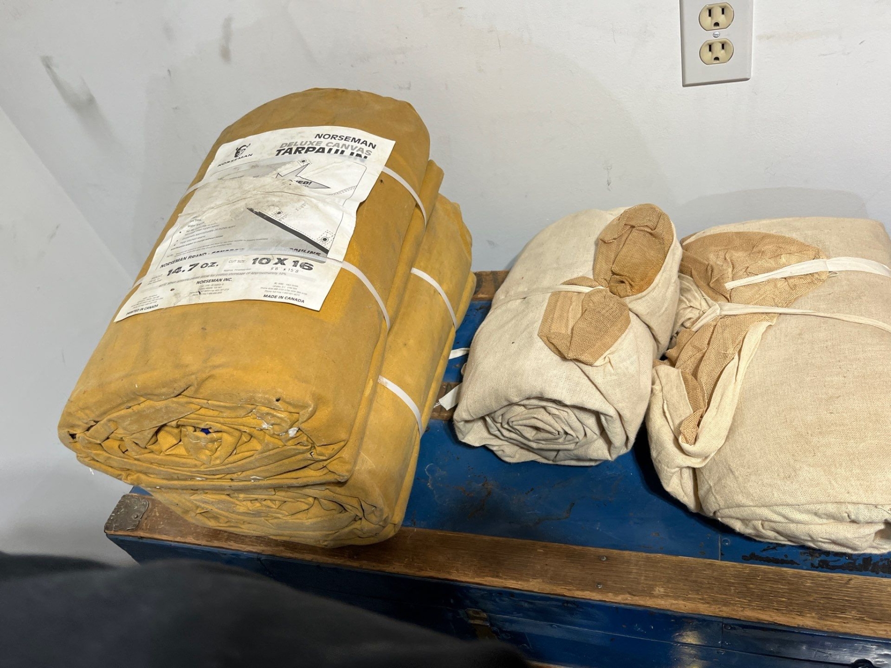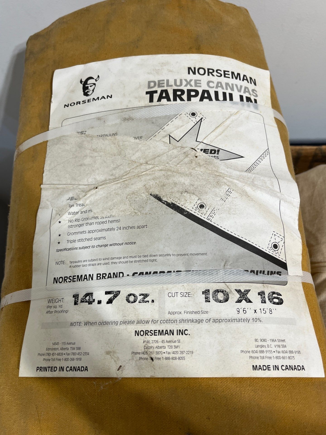 2 NORSEMAN deluxe canvas TARPAULIN 14.7 ounce 10 x 16 with two mosquito bars/mosquito tent with wooden shipping crate