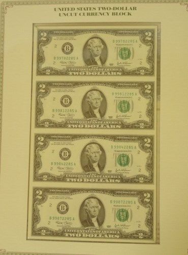 $2 NOTE PORTFOLIO CONTAINS 1928, 63, 76, 1 UNCUT BLOCK FROM 2003, & 1 2003 UNC.