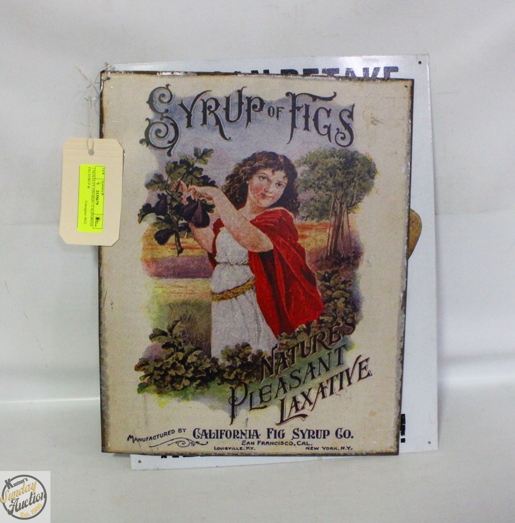 2 NOVELTY TIN SIGN - CALIFORNIA FIG SYRUP &