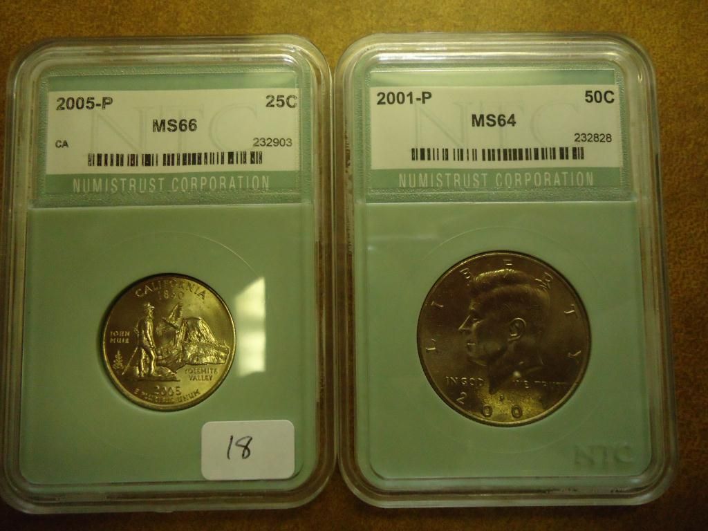 2005-P CALIFORNIA QUARTER MS66 AND 2001-P KENNEDY HALF DOLLAR MS64