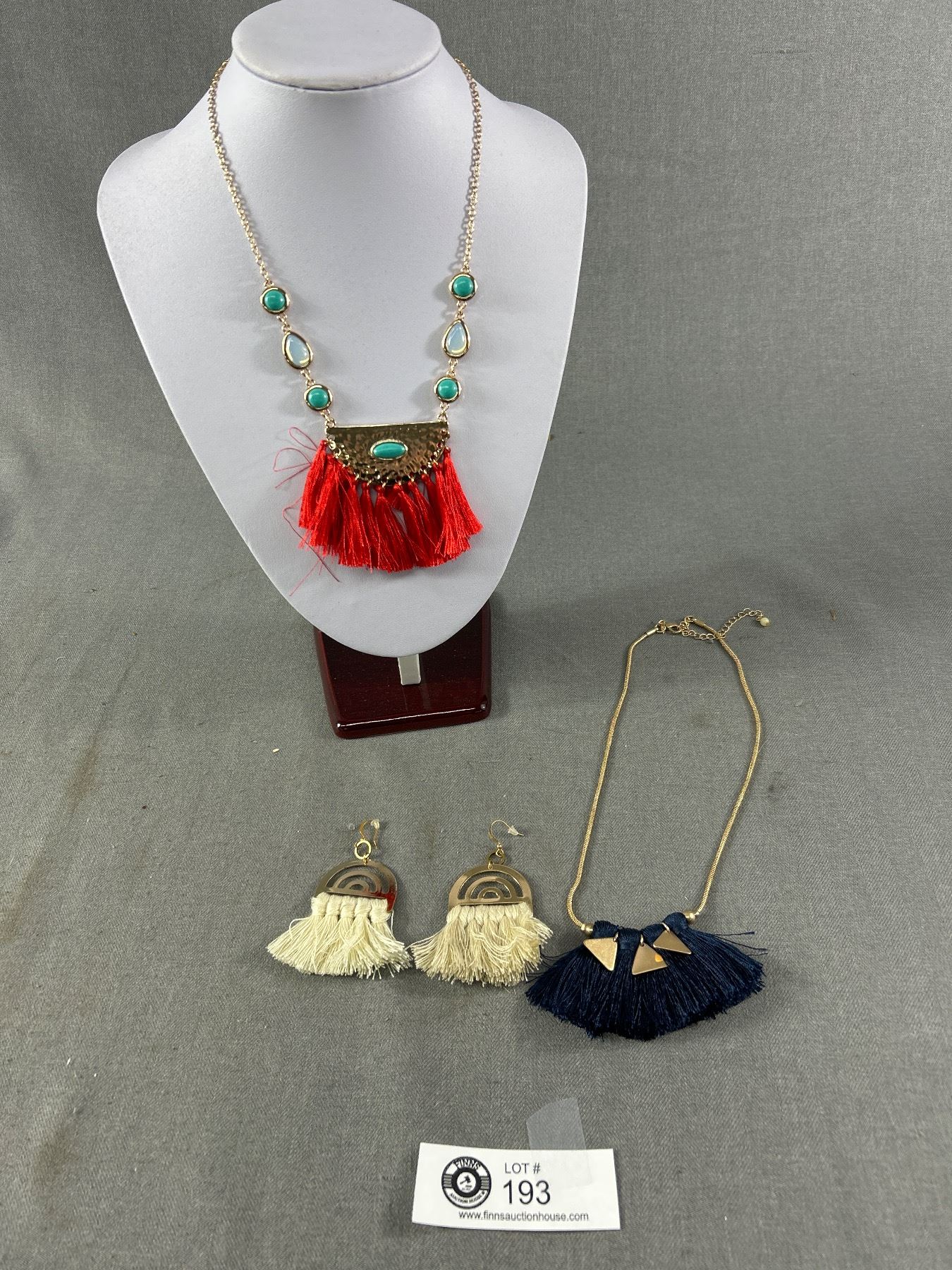 2 NWT Designer Necklaces and Pair of Earrings, All w/ Tassles