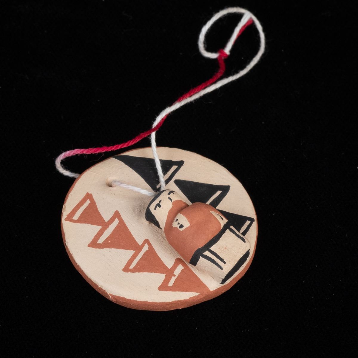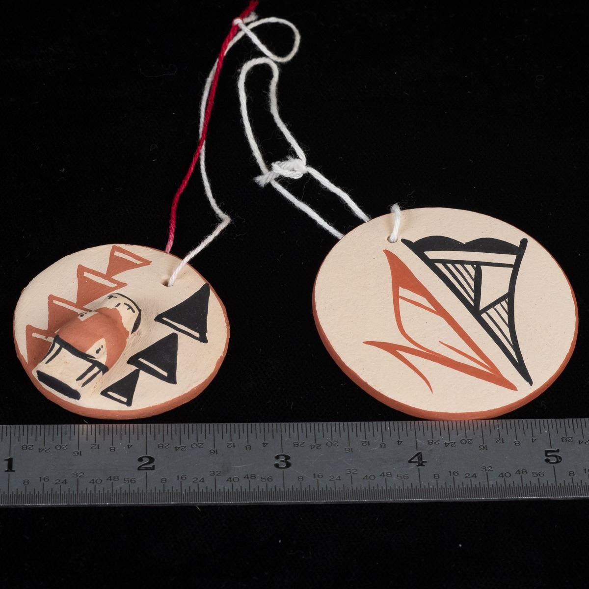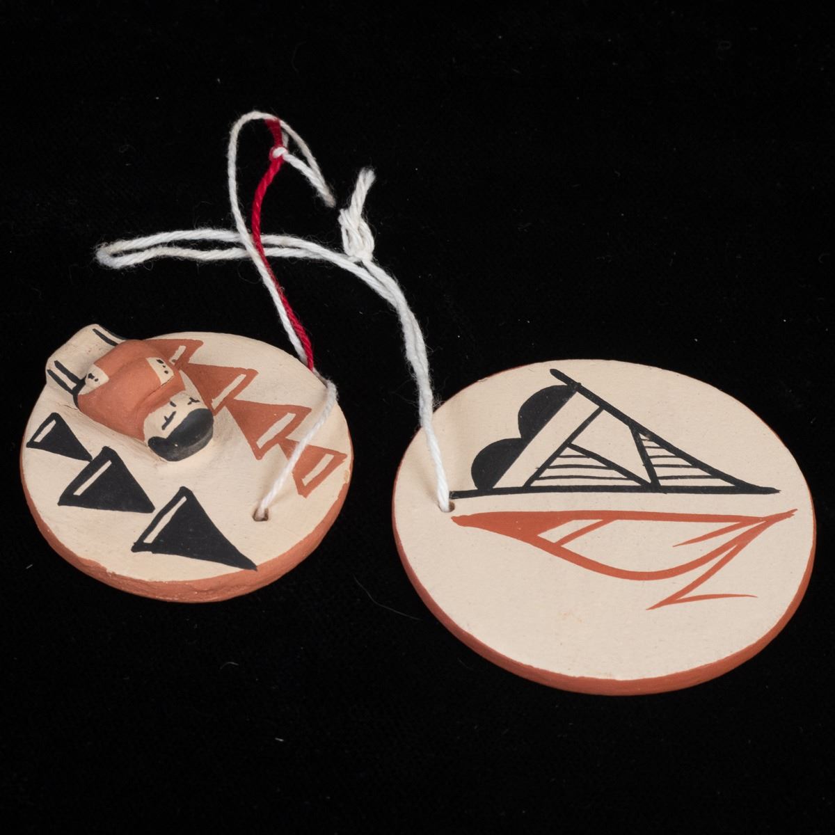 2 Native American Jemez Pottery Ornaments, measures 2''L, artist's initials on back of storyteller ornament