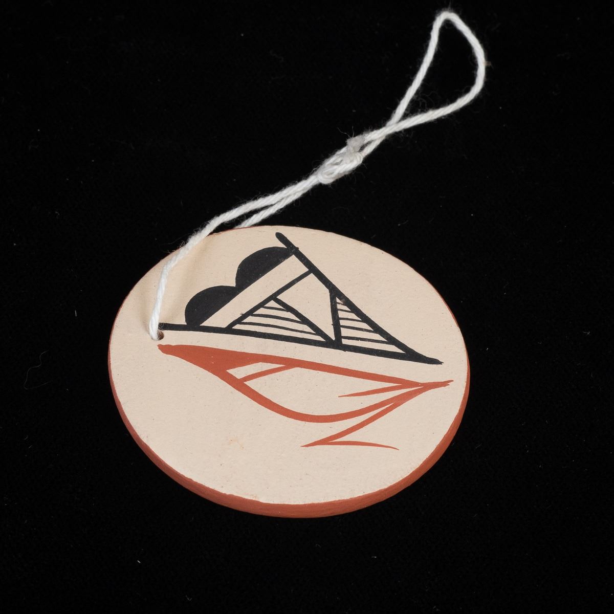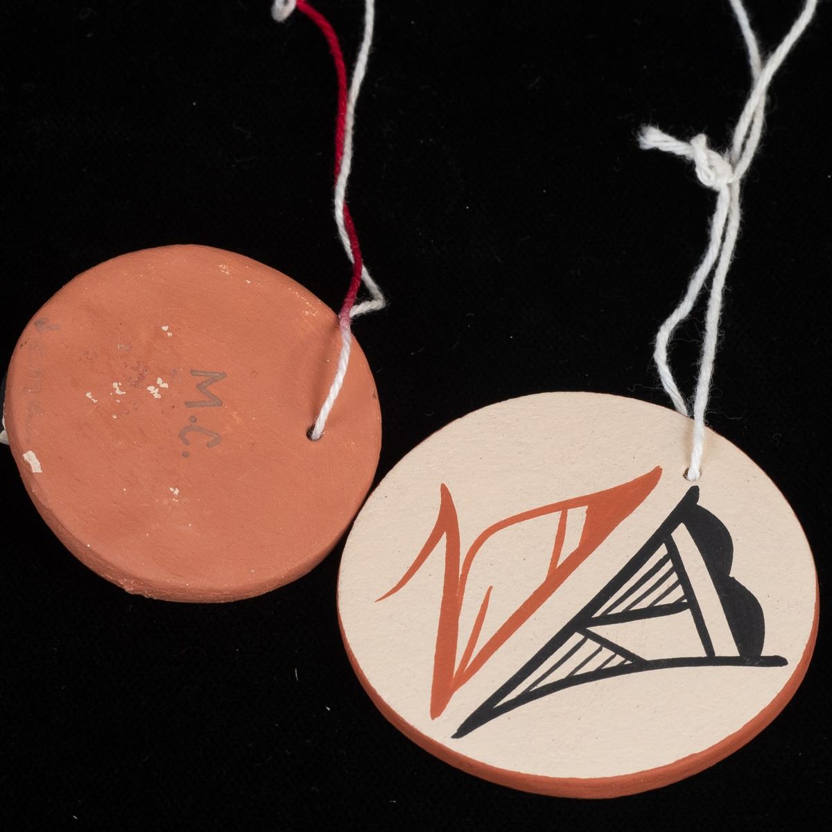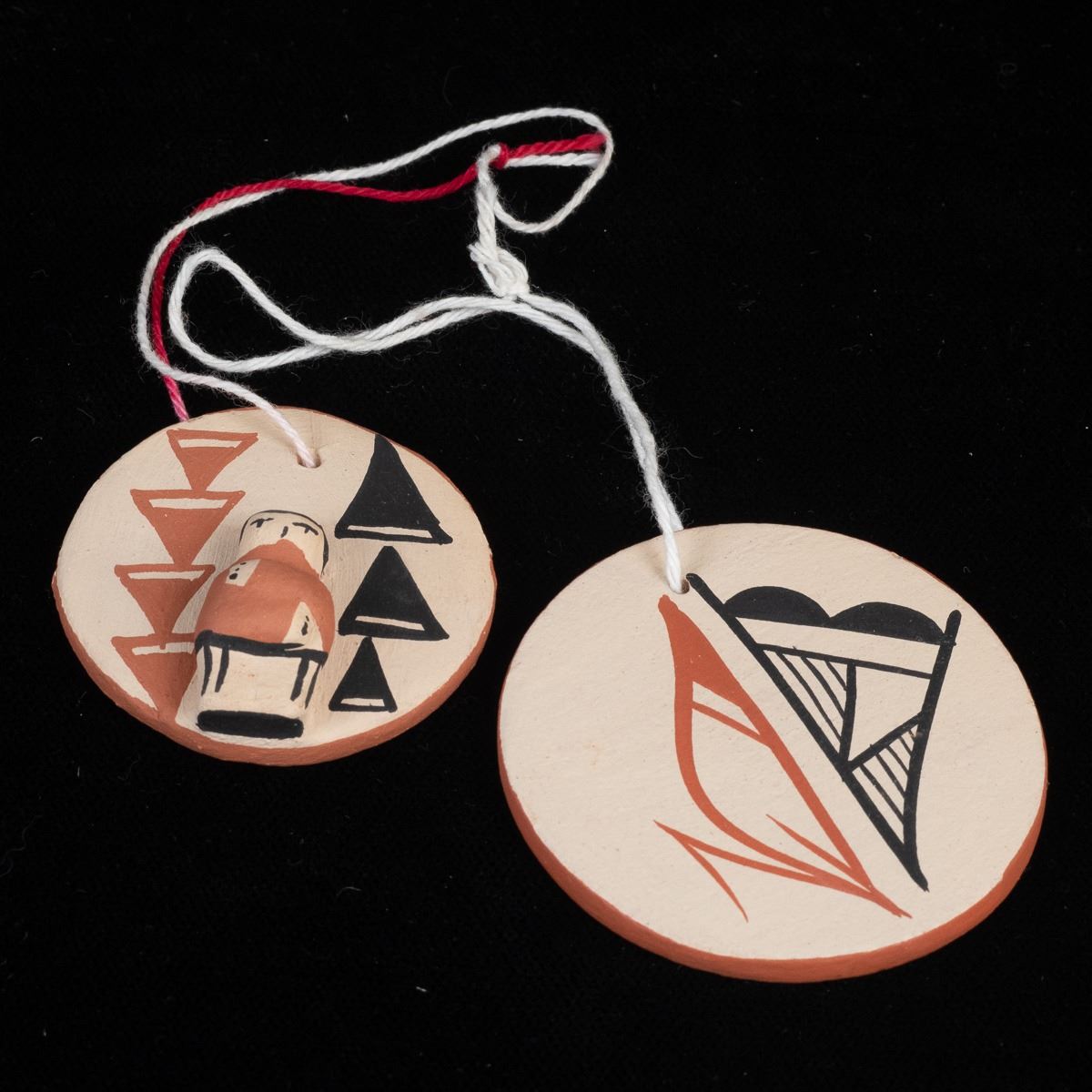 2 Native American Jemez Pottery Ornaments, measures 2''L, artist's initials on back of storyteller ornament