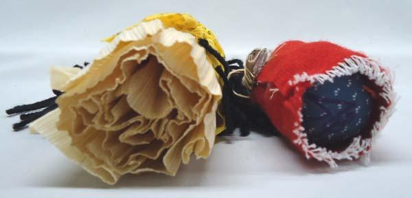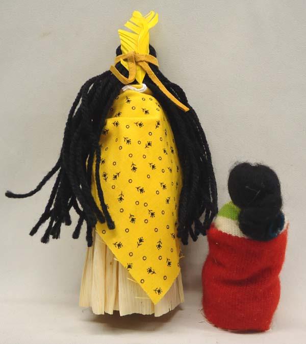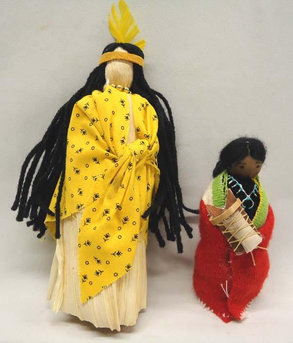 Native American 1 Iroquois Woman Cornhusk Doll and 1 Navajo doll with baby in Cradleboard. Cornhusk doll measures approx. 6''tall, some feather damage. Buyers Pay Actual Shipping and Handling Charges(see terms and conditions for more information).