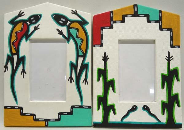 2 Native American Hopi Hand Painted Picture Frames By Ryan Yani. Both measure approx. 5''H x 3 1/2''W. Buyers Pay Actual Shipping and Handling Charges(see terms and conditions for more information).
