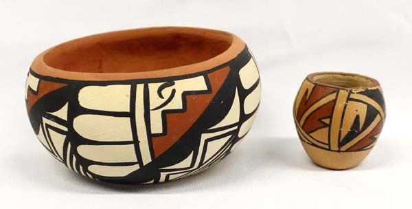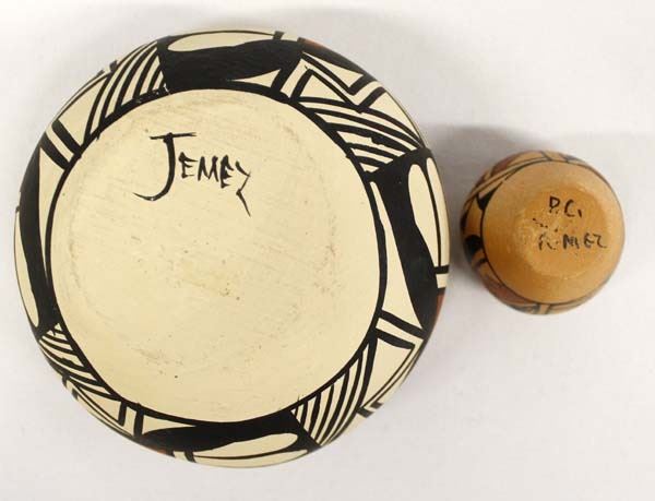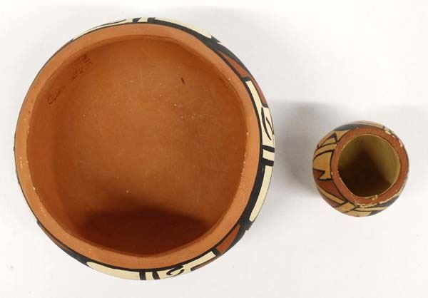2 Native American Jemez Pottery Jars, small one is by P.C. and the larger one is unsigned, largest measures 2'' x 4.5''D
