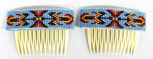 2 Native American Navajo Beaded Hair Combs, measure 3.25'' x 2.25'', stunning beadwork, beaded on leather