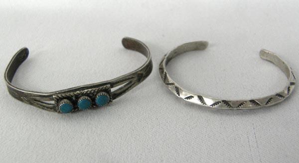2 Native American Navajo Childs Bracelets. Largest bracelet Measurement in Inches - Inside Length(Including Opening)5'' x 1/4'' Width. Buyers Pay Actual Shipping and Handling Charges(see terms and conditions for more information).