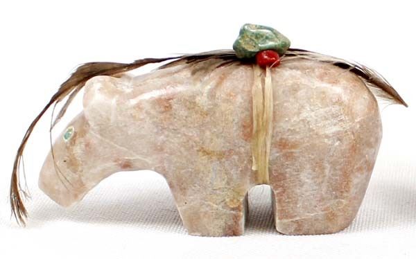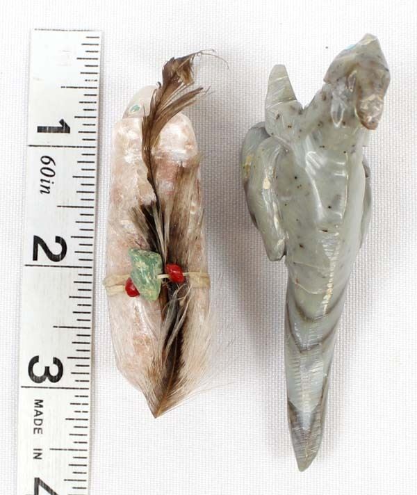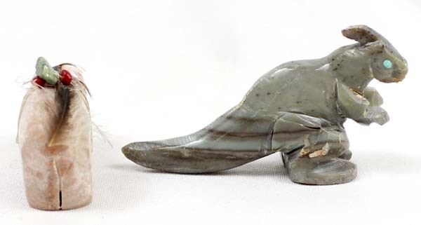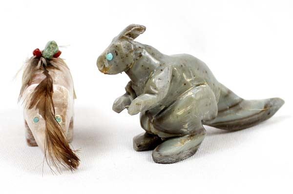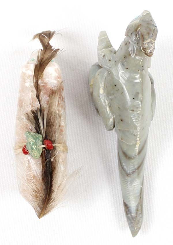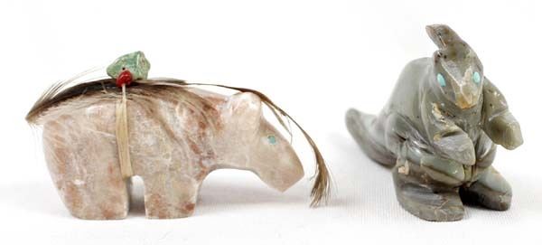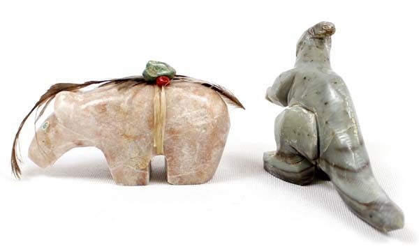 2 Native American Navajo Fetish Carvings, includes bear by Ben Livingston and Dinosaur, largest measures 1.5'' x 3.5'' x 1''