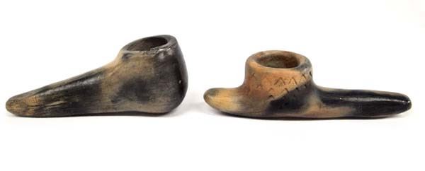 2 Native American Navajo Pottery Pipes, one measures 5.25'' x 1.75'' and the other measures 4.75'' x 1.5''