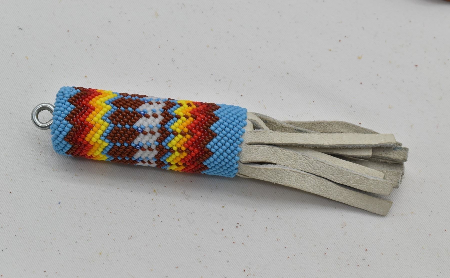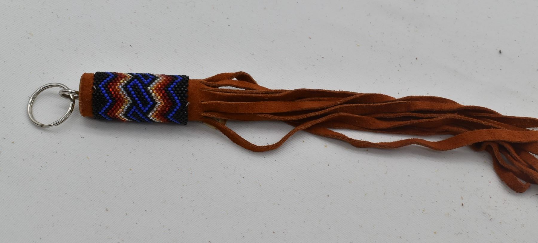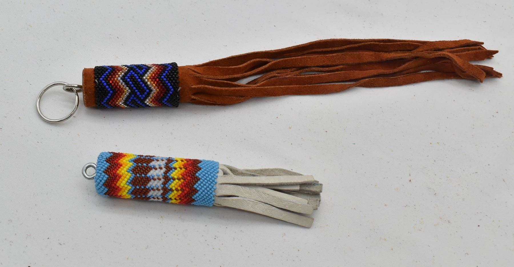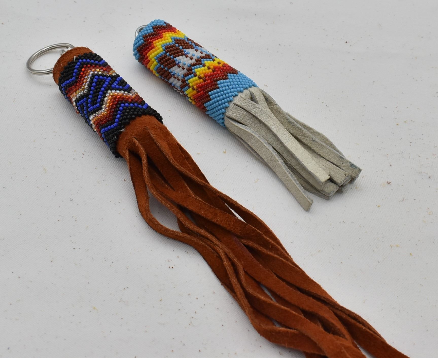 2 Native American Shoshone Beaded Leather Keyrings, longest measures 12.5'' which includes the ring x 1''W