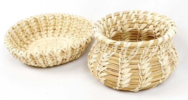 2 Native American Tohono O'odham Baskets, shallow bowl basket measures 5 3/8'' x 1.25''H and the other measures 2.75''H x 4.5''D