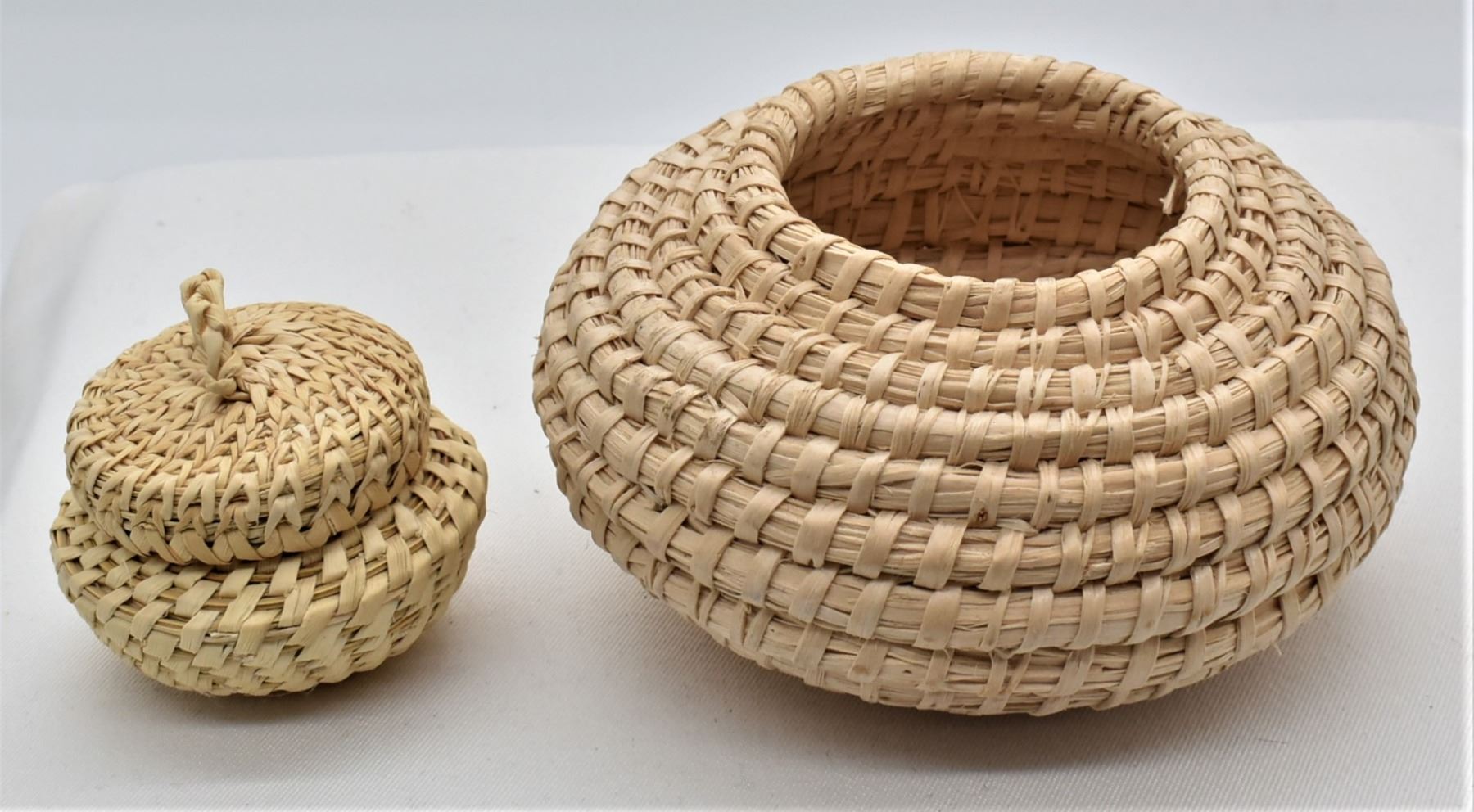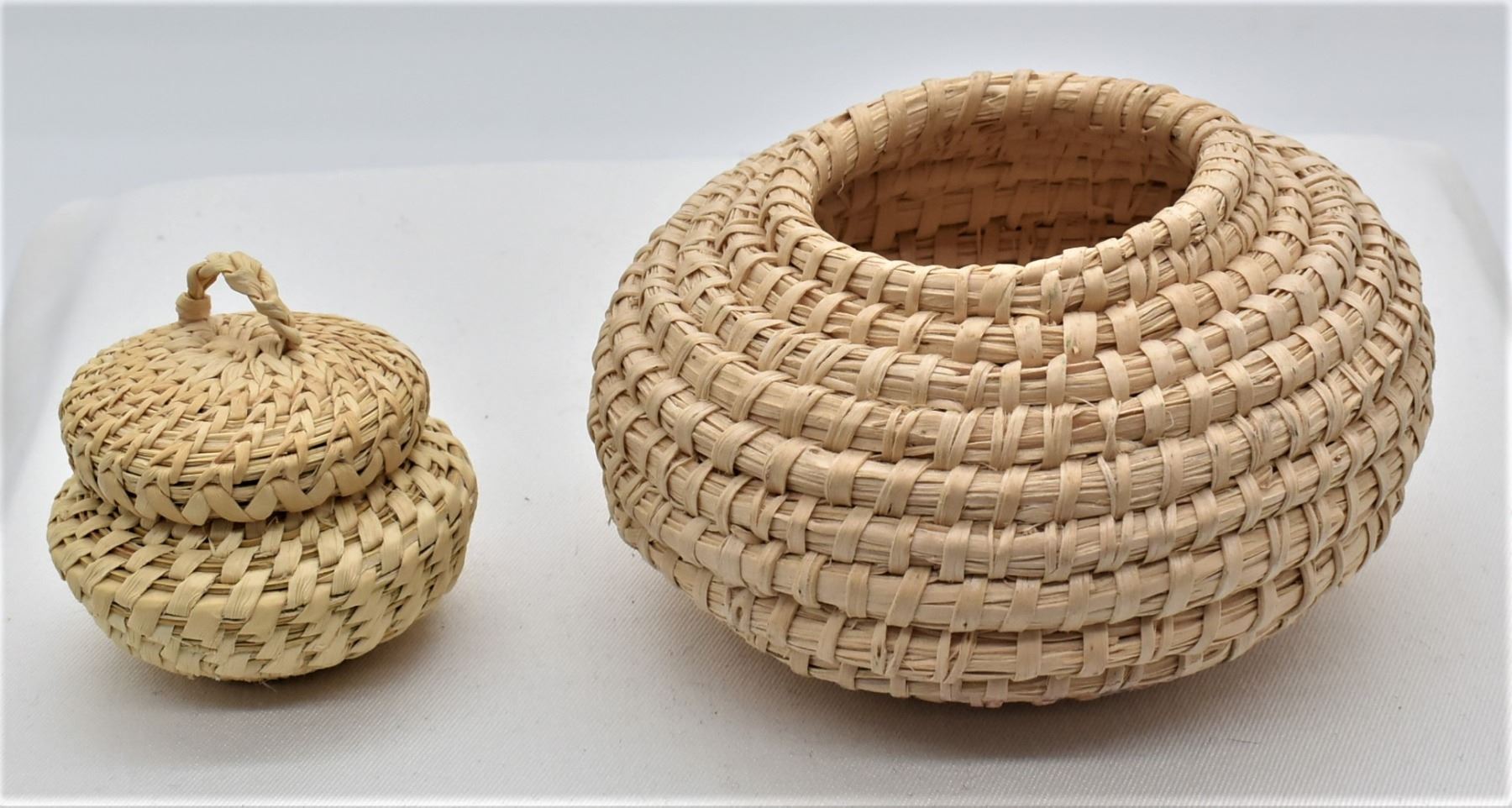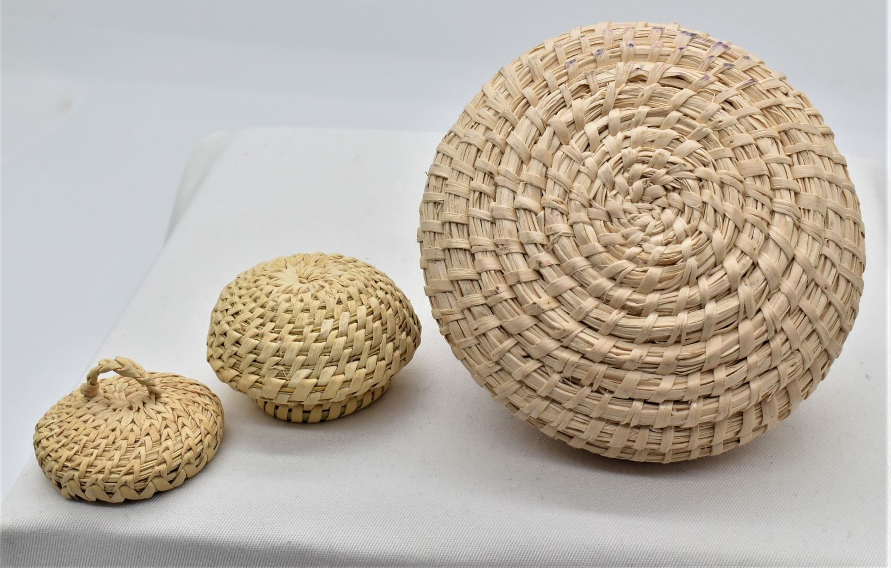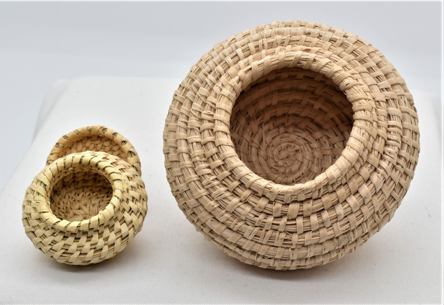 2 Native American Tohono O'odham Baskets, largest measures 3'' x 5'', the smaller one is lidded