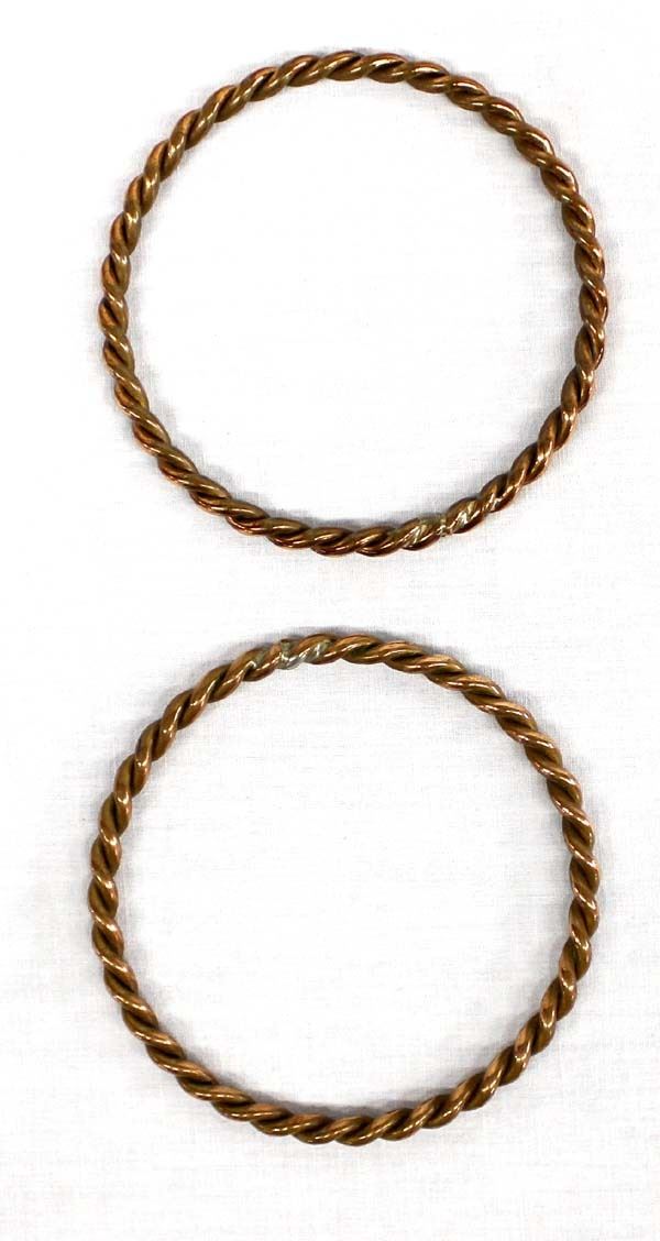 2 Native American Navajo Copper Twist Bangle Bracelets, inside measurement of 9'' x 3/16''W