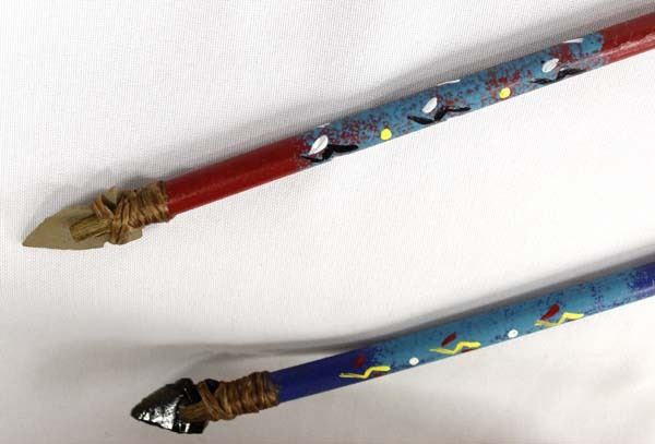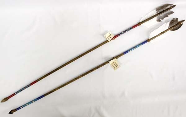 2 Navajo Painted Arrows, made by G. George, 37.5'' in length
