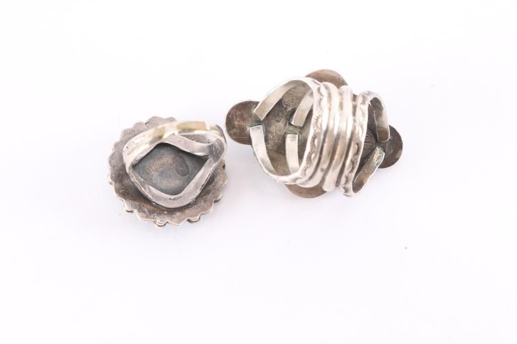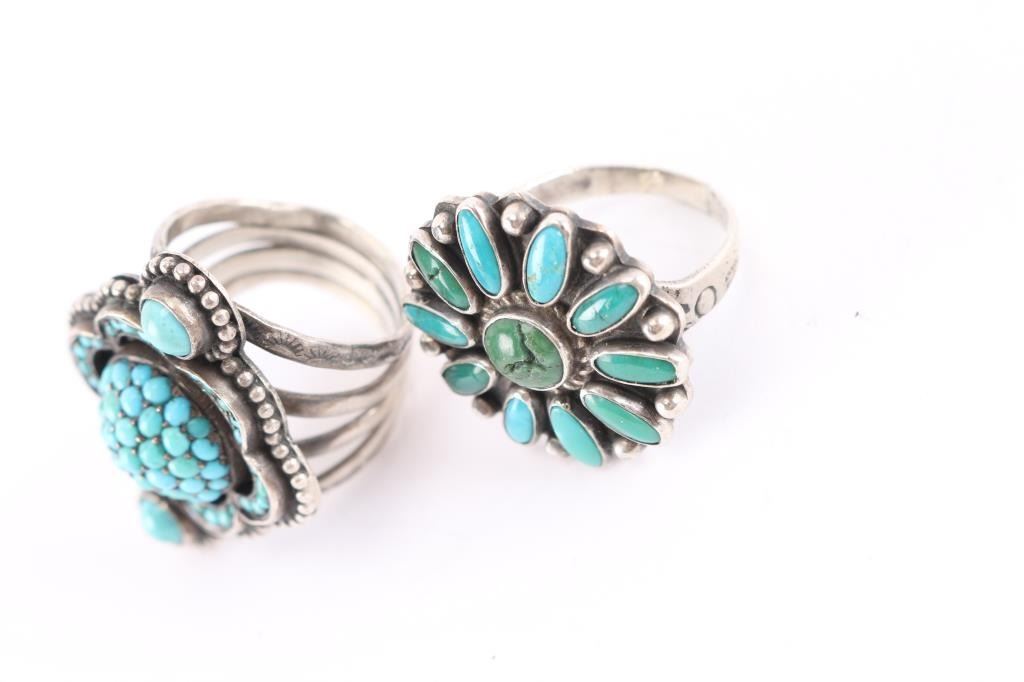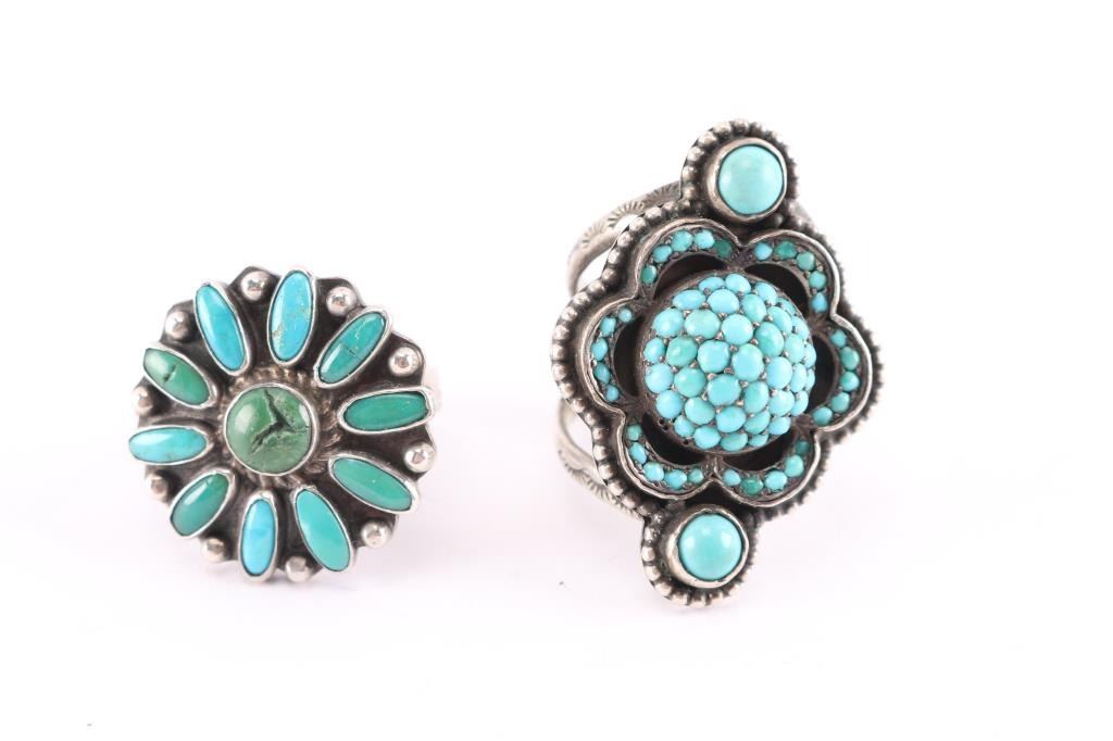 (1) Two tone turquoise cluster in daisy design ring set in sterling size 9.5