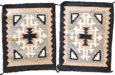 Ca. 1980s, Rare pair of small matching Two Gray Hills rugs done in earth tones. 23" x 17-1/2" each