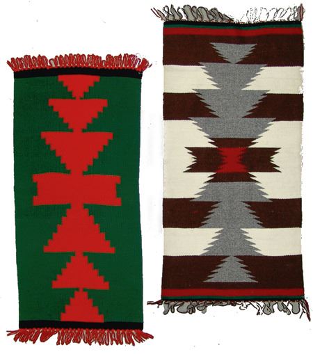 Ealry/Mid 1900s, Pair of small finer weave table/altar rugs, the green one with Germantown wools. Very good condition. 18" x 37", 16" x 37"