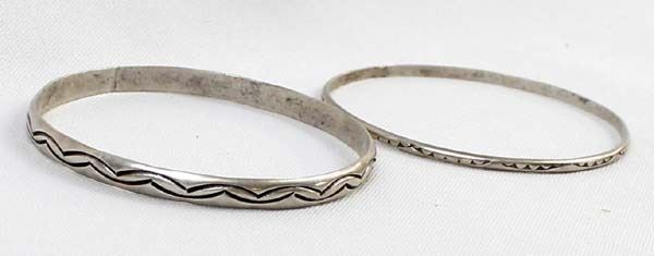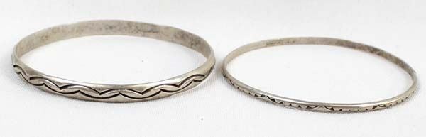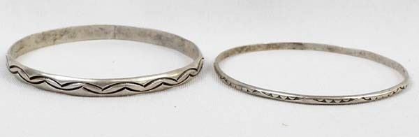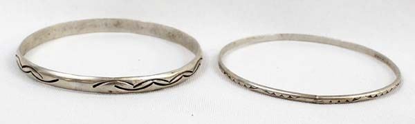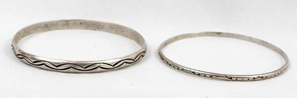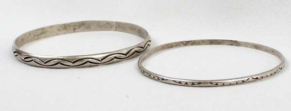2 Native American Navajo Sterling Bangle Bracelets, the smaller one is marked sterling, both measure 2.75''D, 24.6 gtw