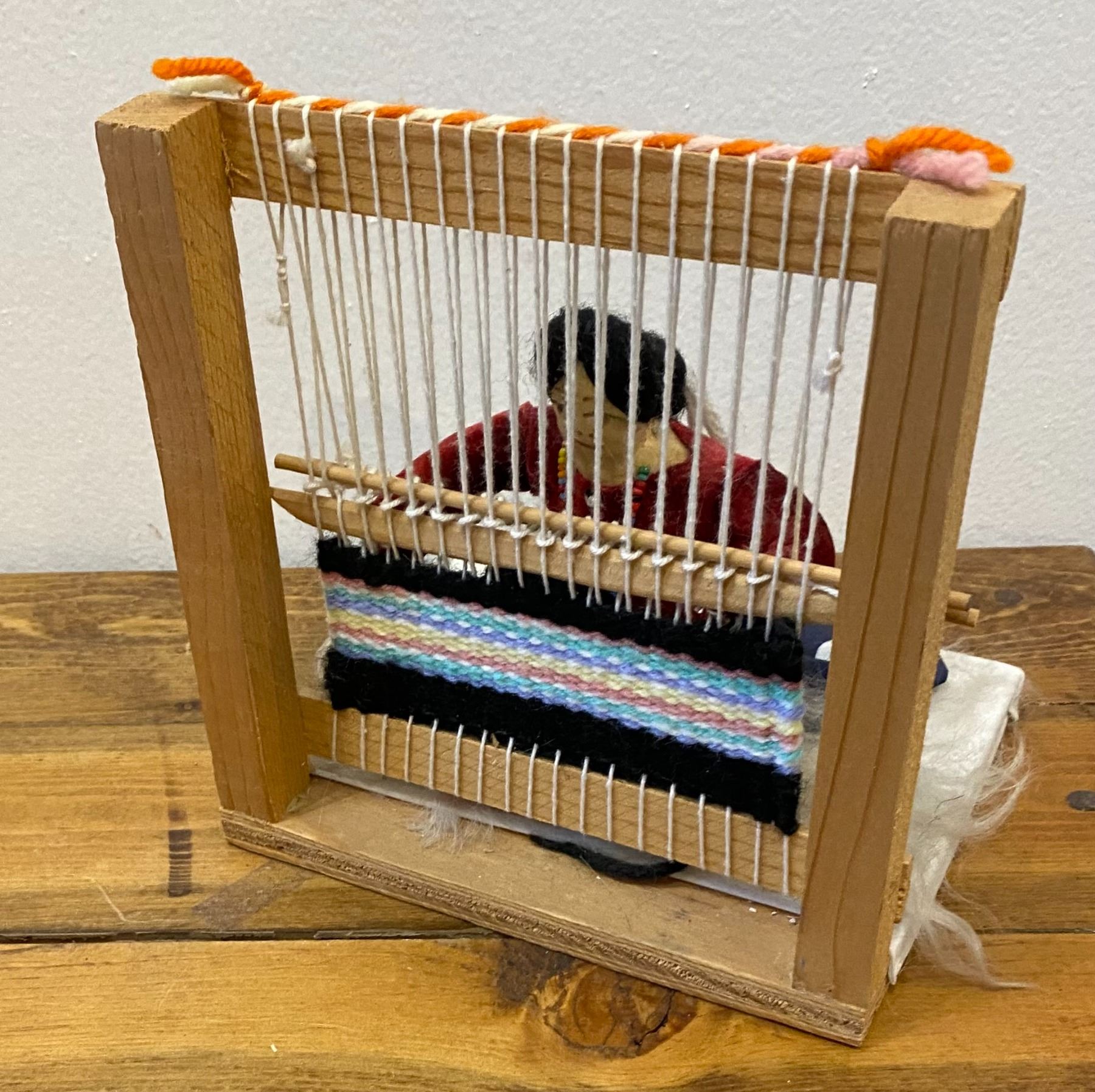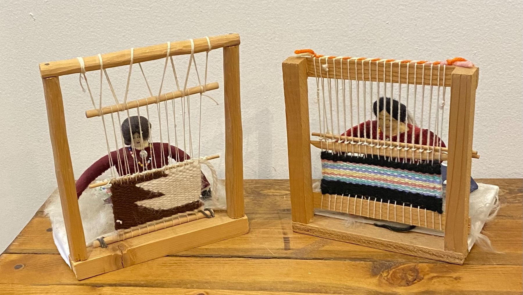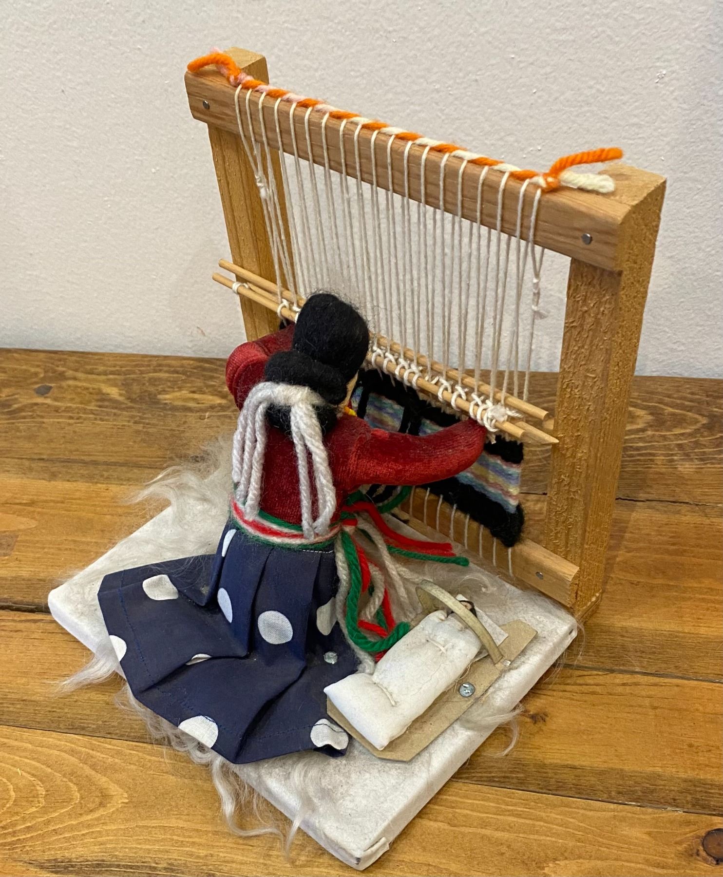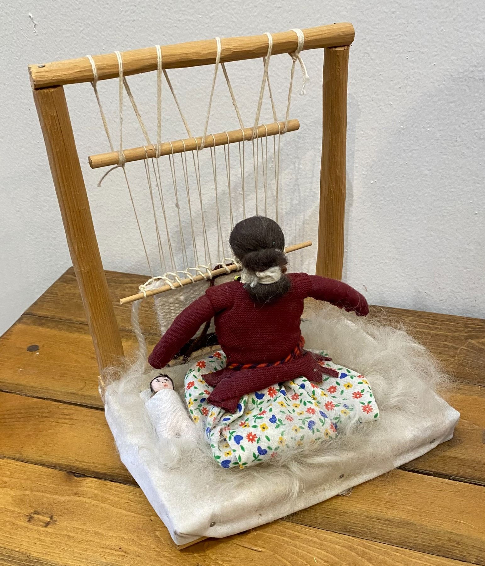 These Weavers are nice décor for that Southwest—Native American Room. Features a Weaver at the Loom while her baby sleeps by her side.