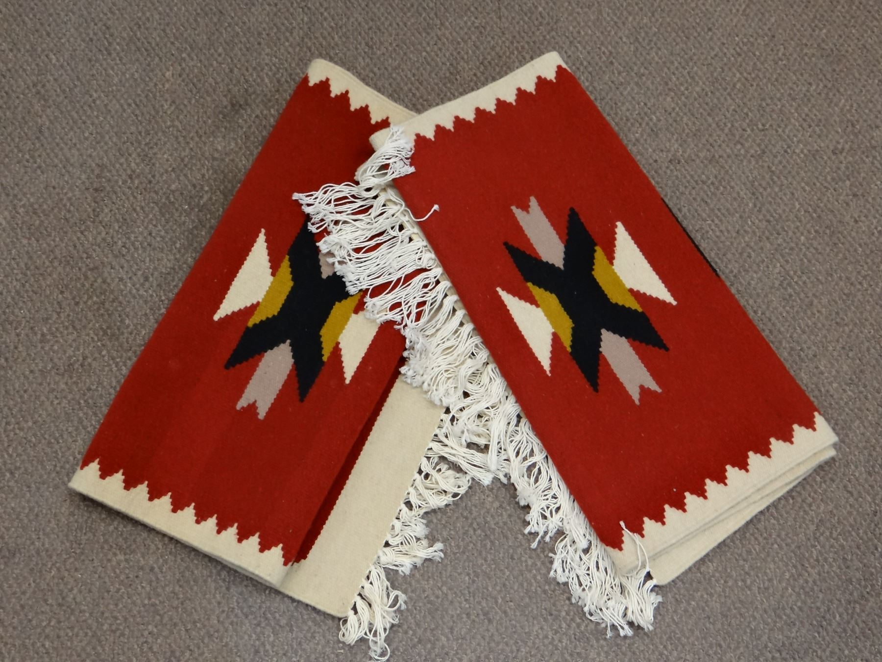 (2) Navajo style weavings: 50" x 24", white border