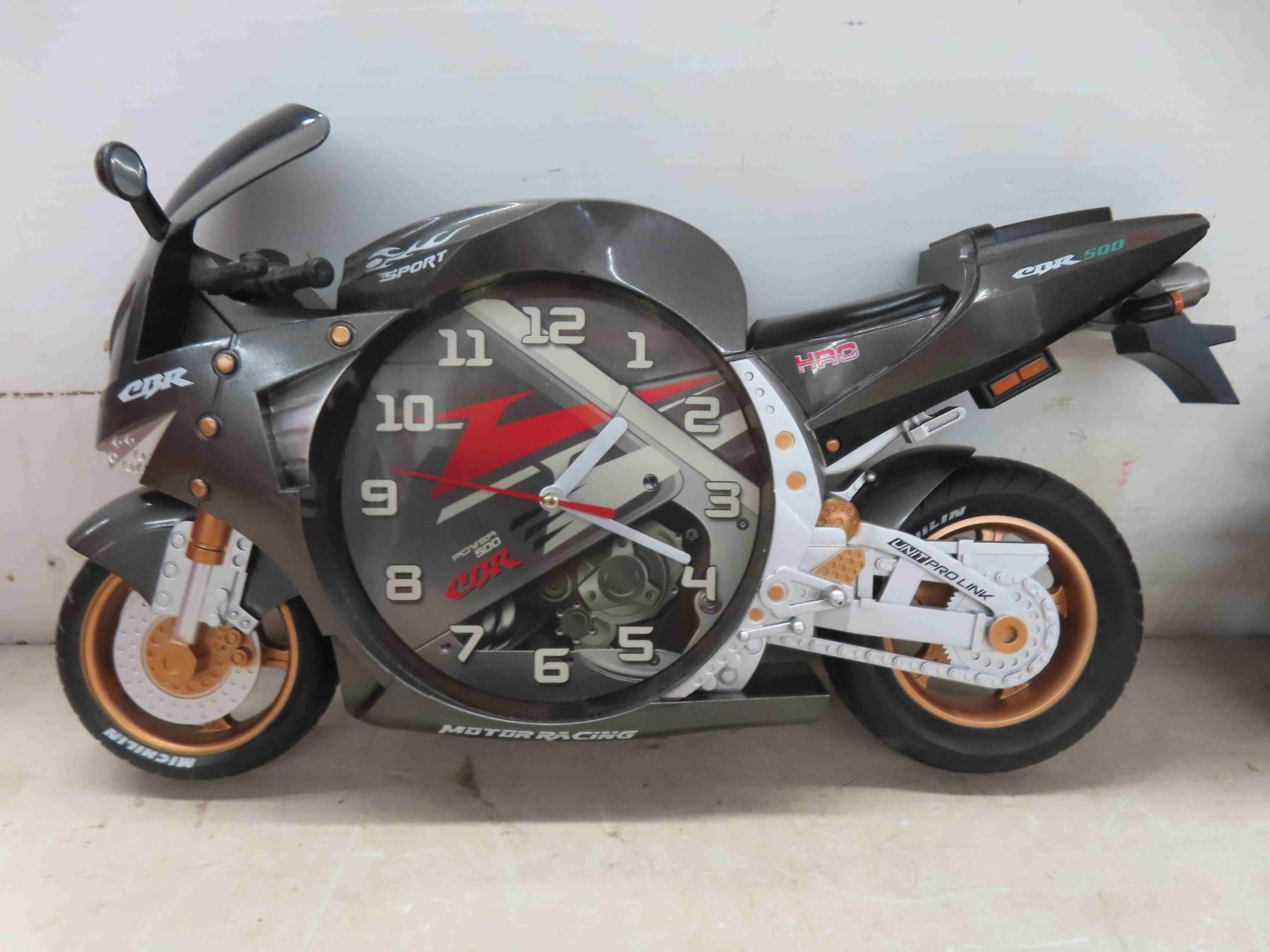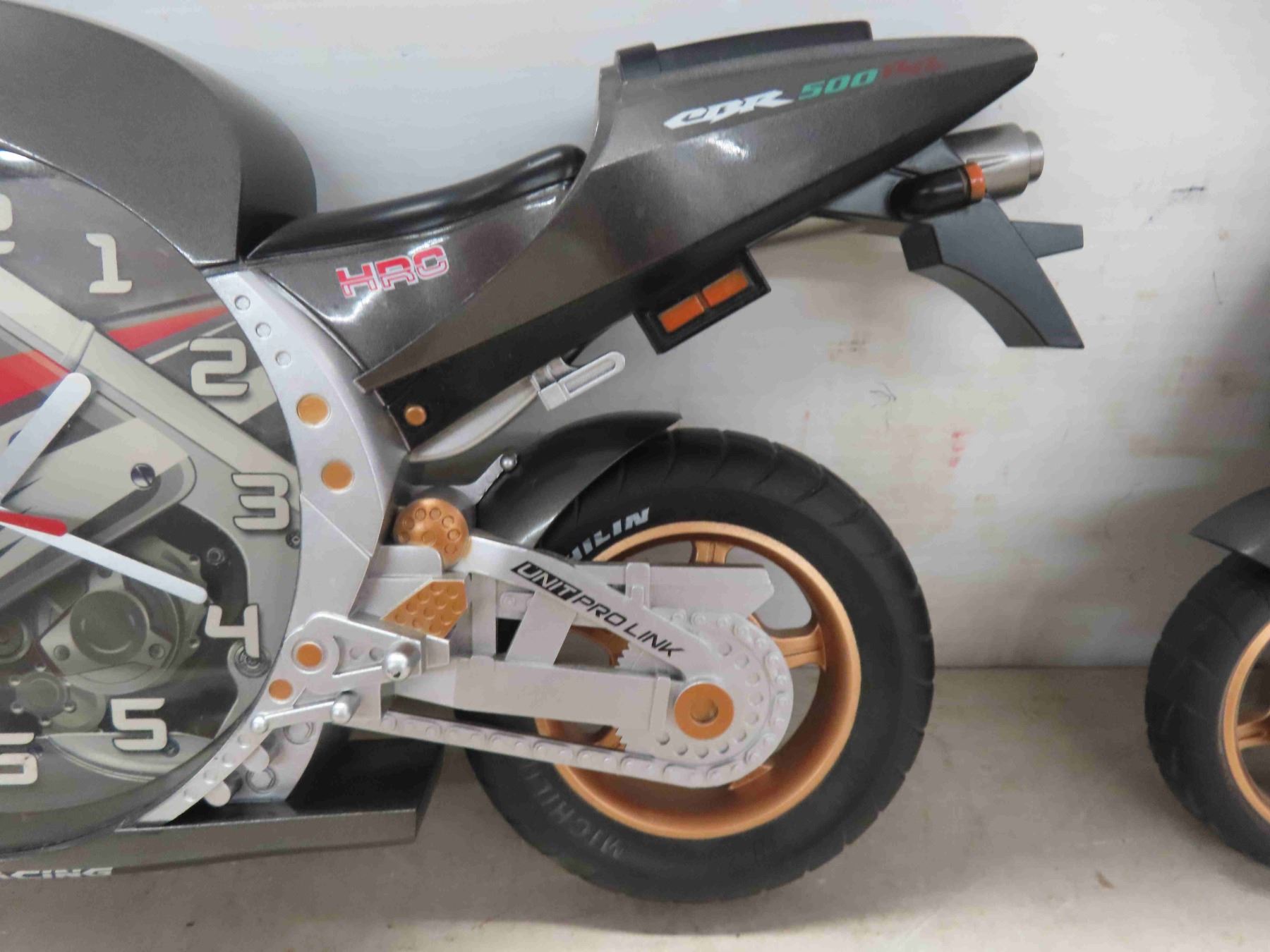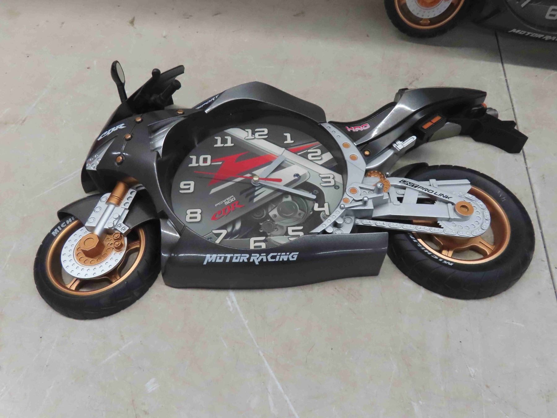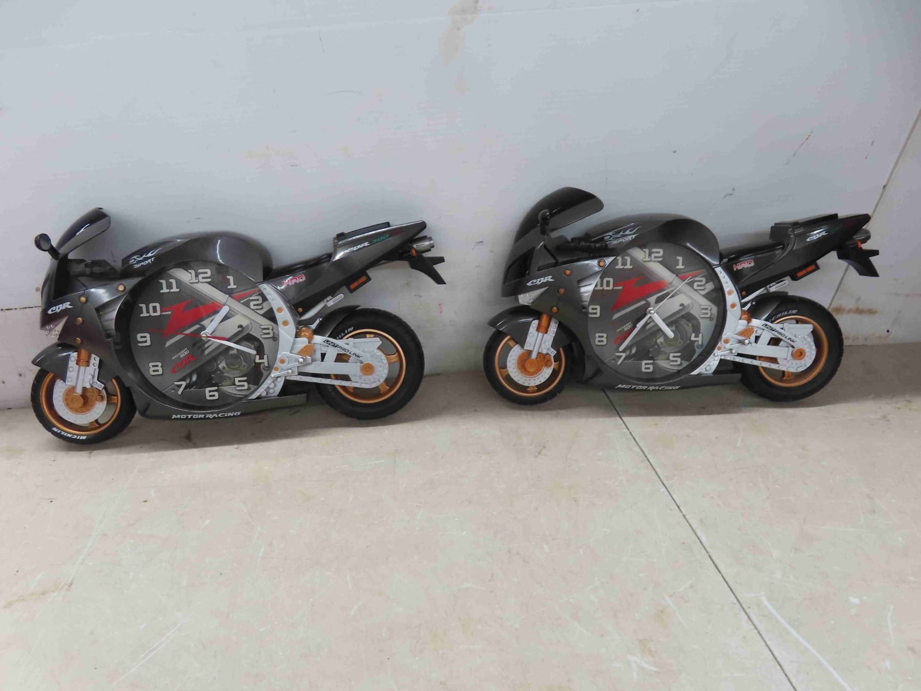 2 Neat Motorcycle Clocks 18'' x 10'' , 2 Jets Car Flags