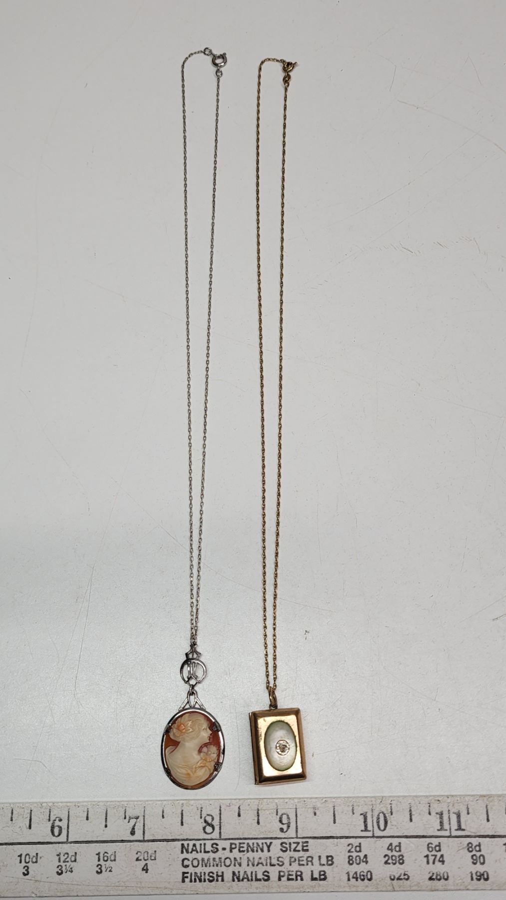 2 Necklaces, cameo - chain with locket, 10K gold - very old