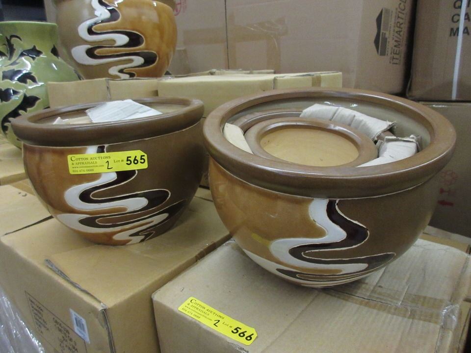 2 New 3 Piece Chocolate & Tan Plant Pot Sets