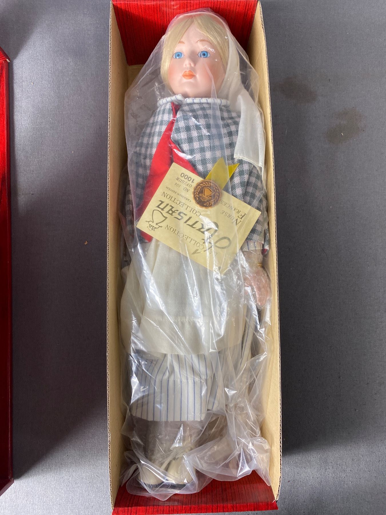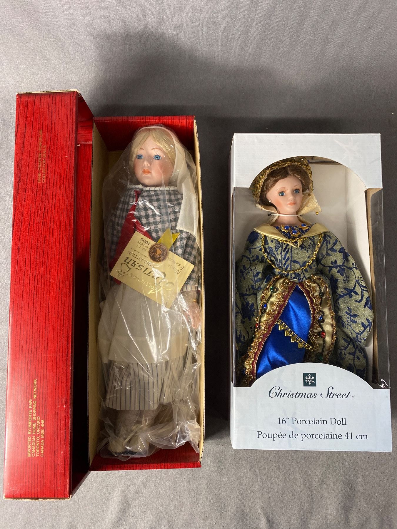 2 New Beautiful Porcelain Collector Dolls Still in Boxes.