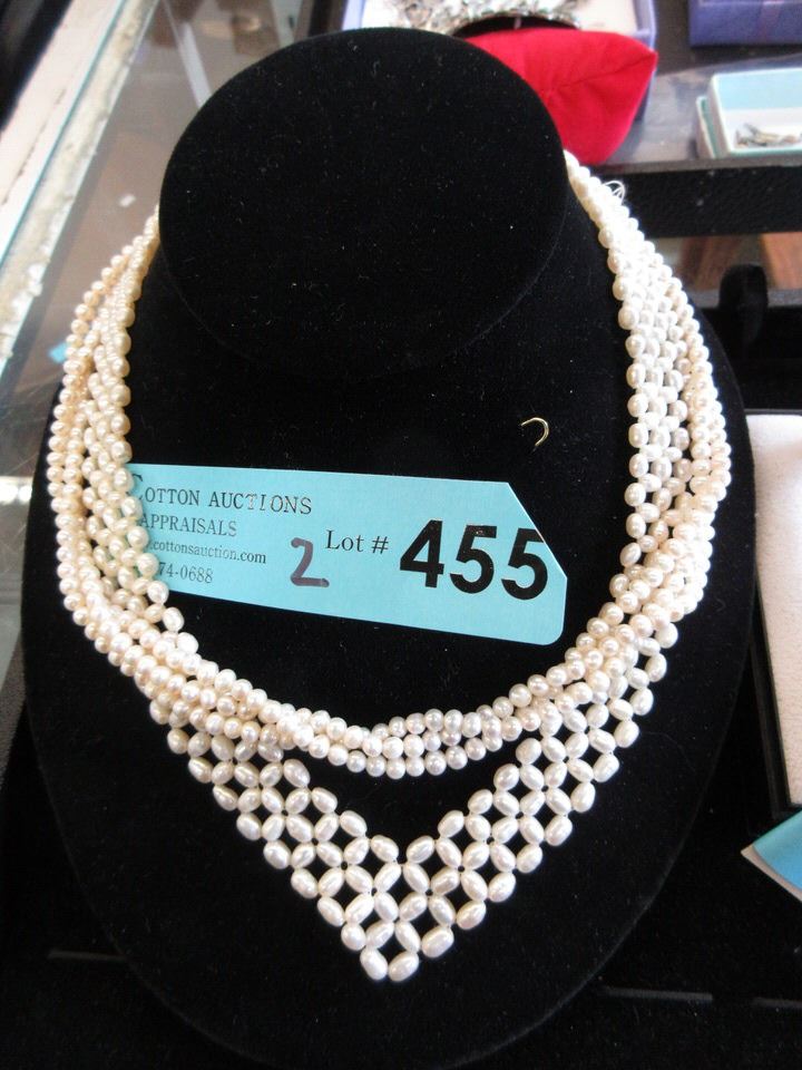 One 16" Triple Strand and One Woven Fresh Water Pearl Pointed Collar Necklace.