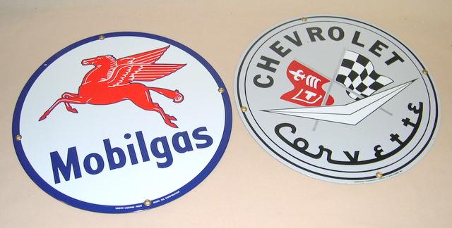 (2) New Porcelain Signs--Chevy Corvette & Mobil