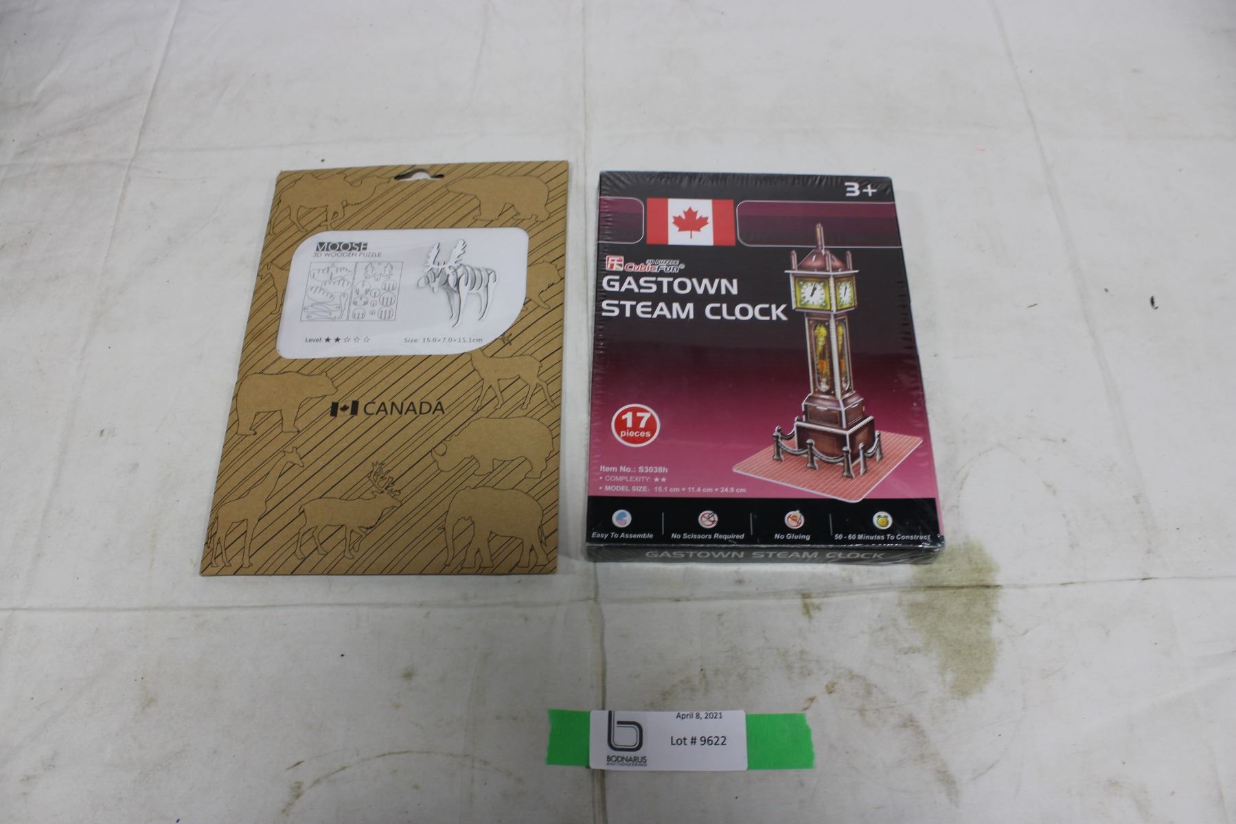 2 New, Sealed 3D Puzzles: Wooden Canadian Moose & Vancouver Steam Clock