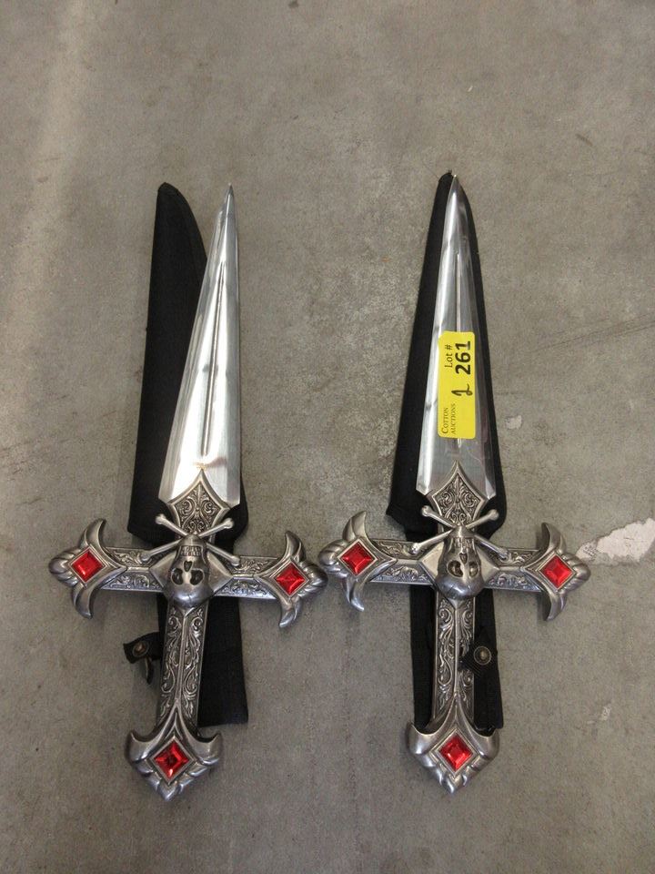 Skull and Crossbones 6 inch wide Hilt. Total length of 16 inches. Comes with a canvas sheath.