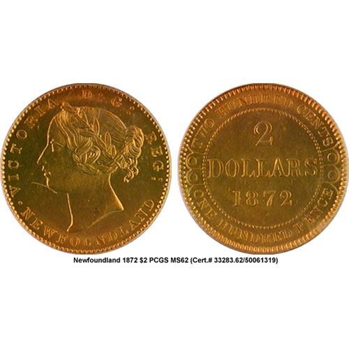 2$ Newfoundland 1872 MS62 PCGS<Br>Superb lustre