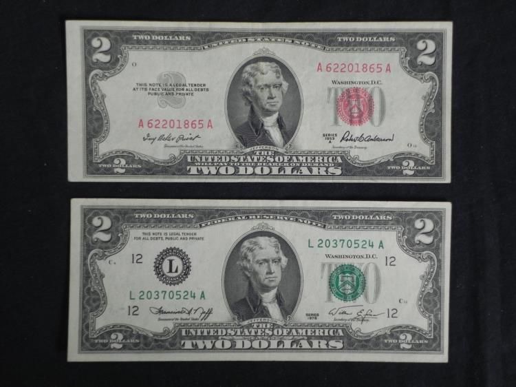 2 Nice $2 Bills * * 1963-A Red Seal * 1976 L San Francisco Note