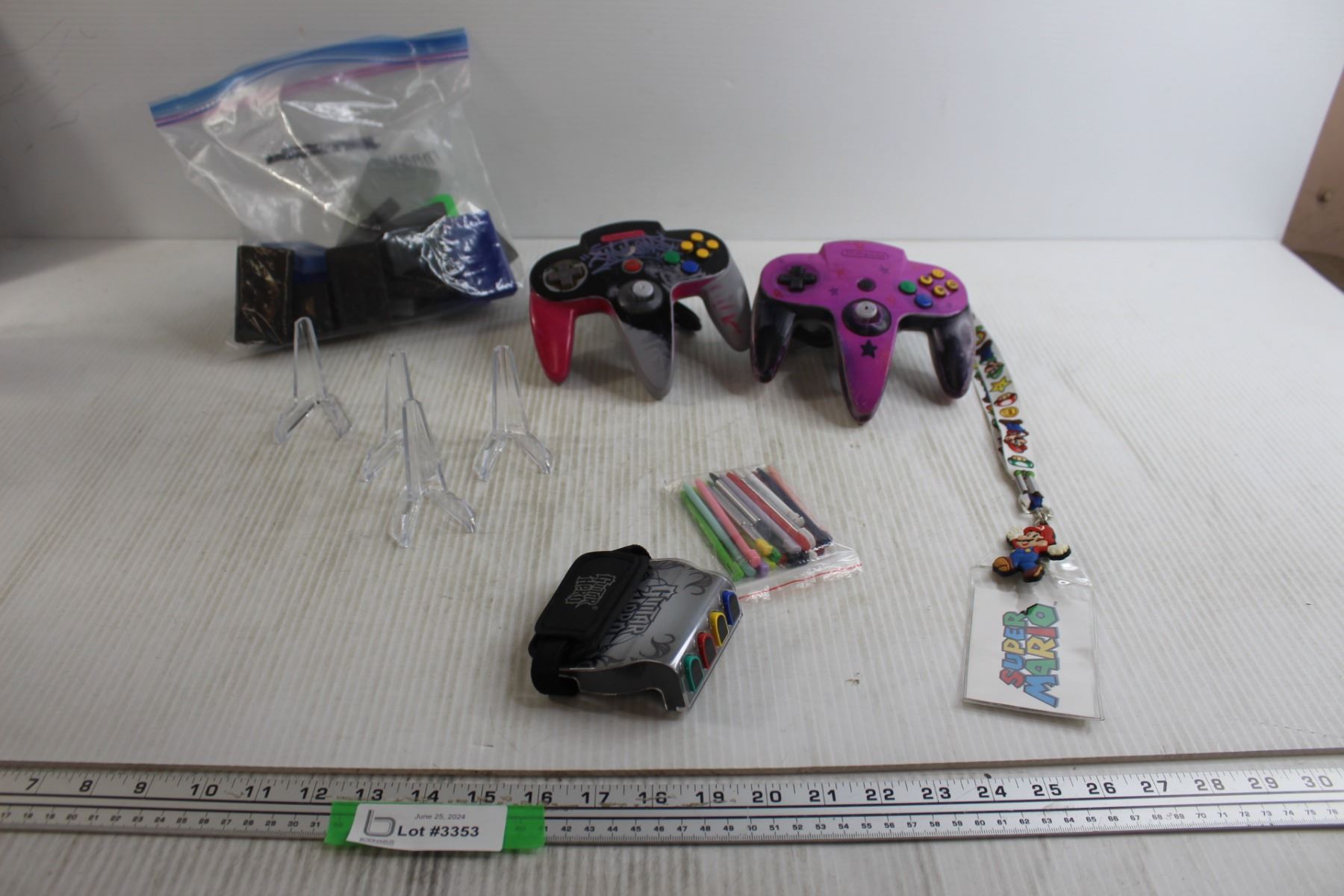 (2) Nintendo 64 Controllers - Untested, Pack of Nintendo DS Styluses, Nintendo Game Cases, Misc.