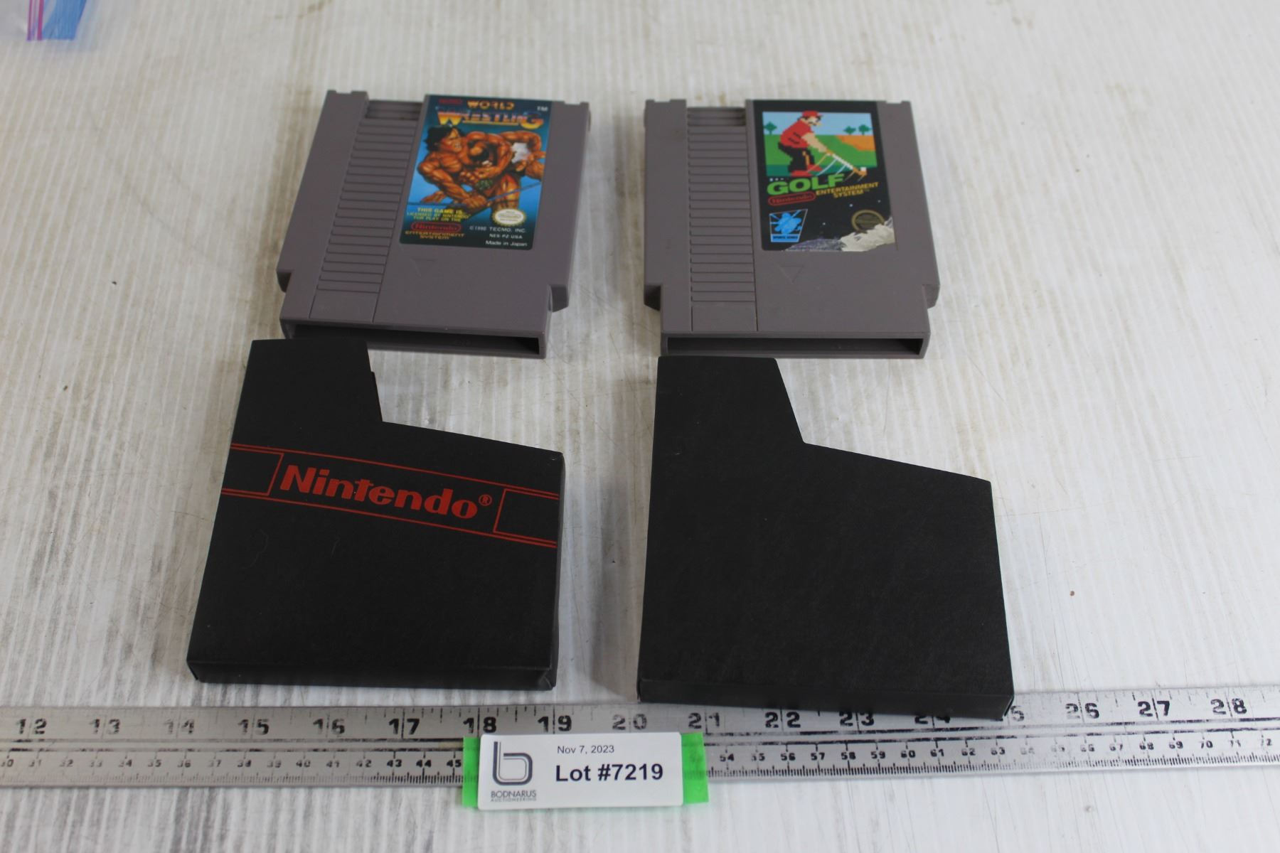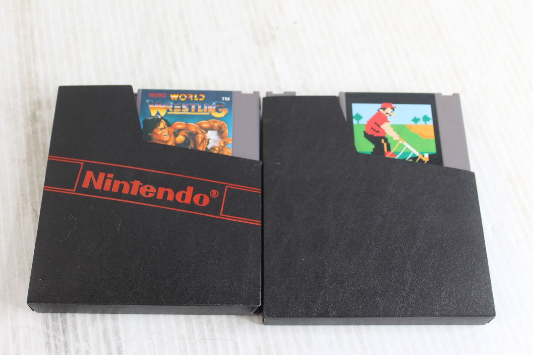 (2) Nintendo - NES Games with Sleeves - World Wrestling, Golf - Both Untested