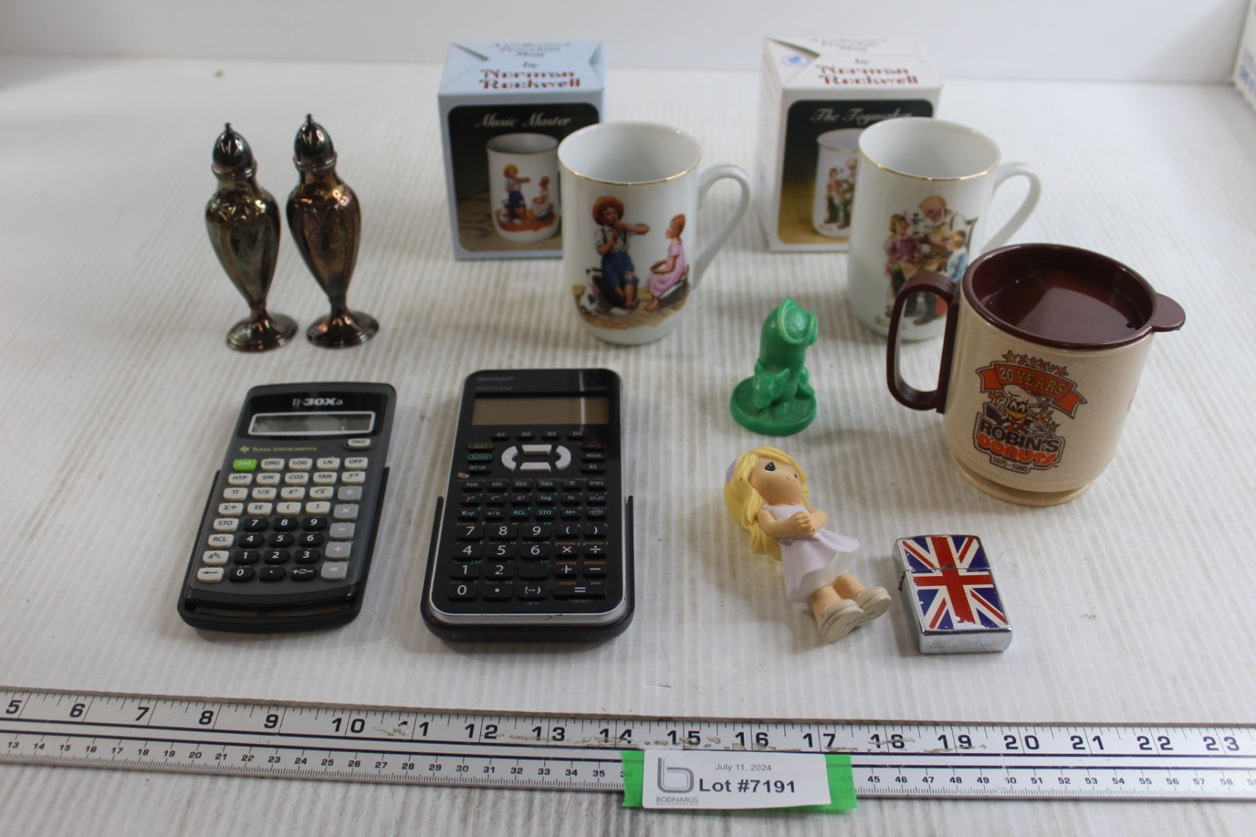 (2) Norman Rockwell Mugs, (2) Calculators - As Is, Misc.