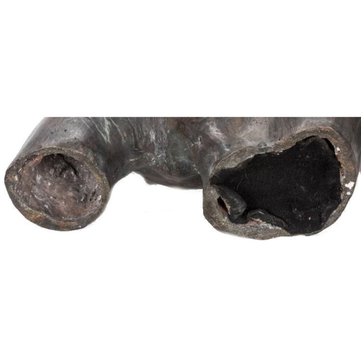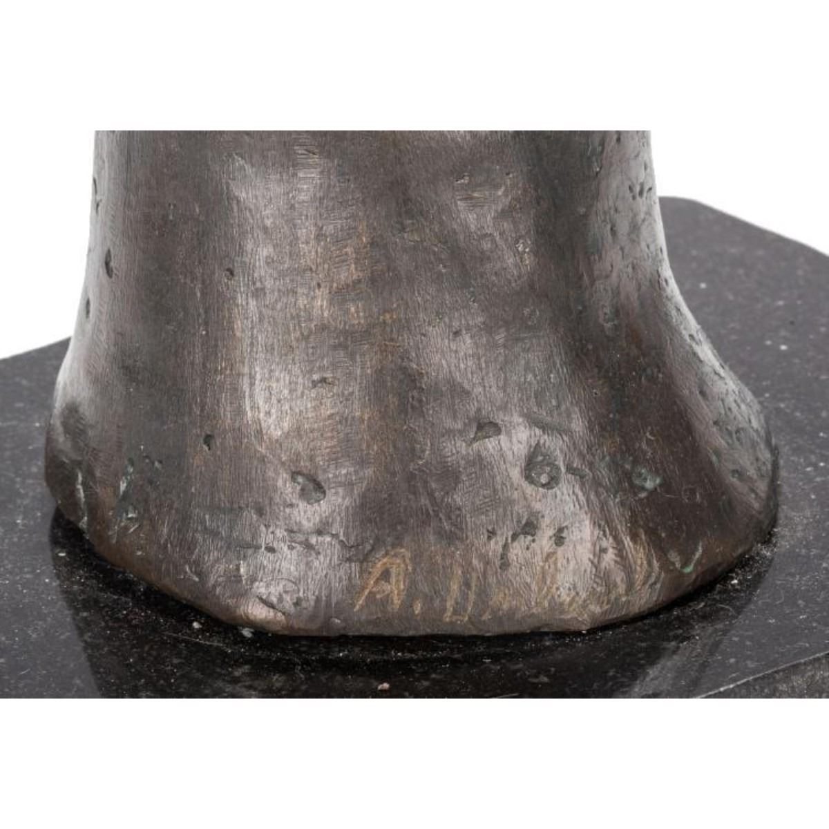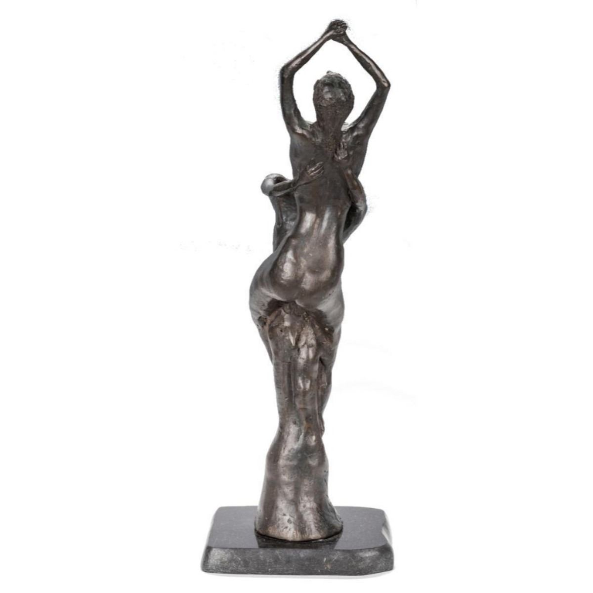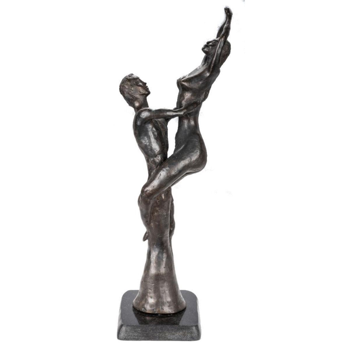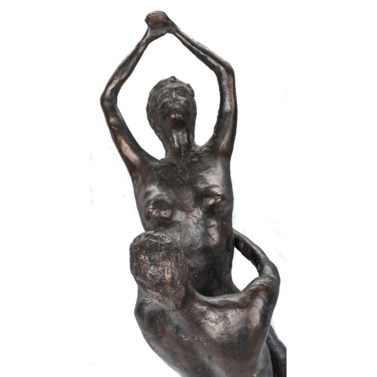 Two (2) nude bronze sculptures by Arthur Umlauf (Georgia, b. 1947). 1st item: Bronze nude sculpture depicting two lovers in an embrace with the woman leaning her head upon the man's shoulder. Unsigned. 21 1/4" H x 21" W x 7 1/2" D. 2nd item: Bronze nude depicting two lovers in an intimate embrace. Signed "A. Umlauf" on base. Mounted onto a naturalistic black marble base. Bronze - 25" H. With base - 26" H. Both 20th century. - 9129-012718-IN-00597