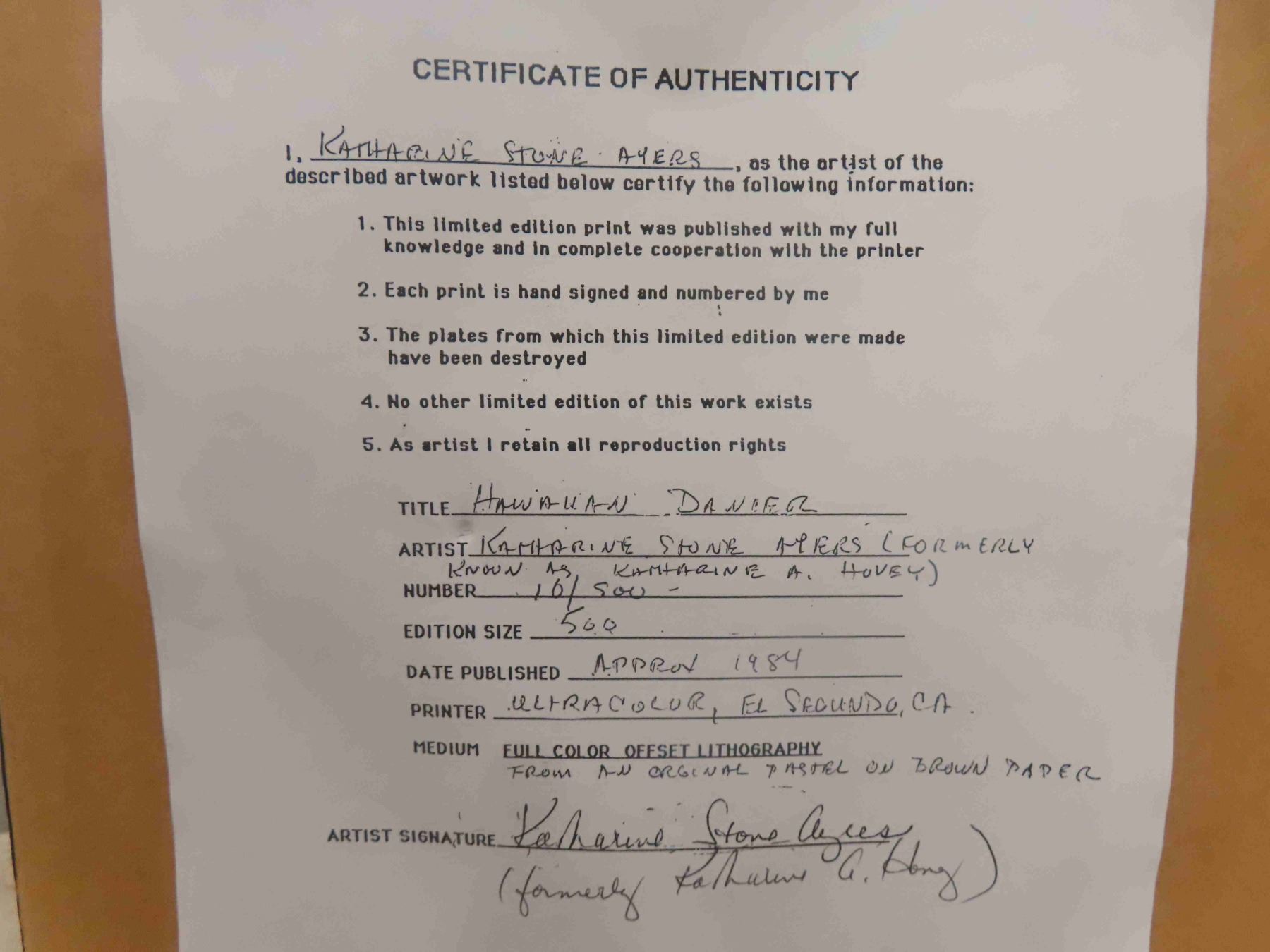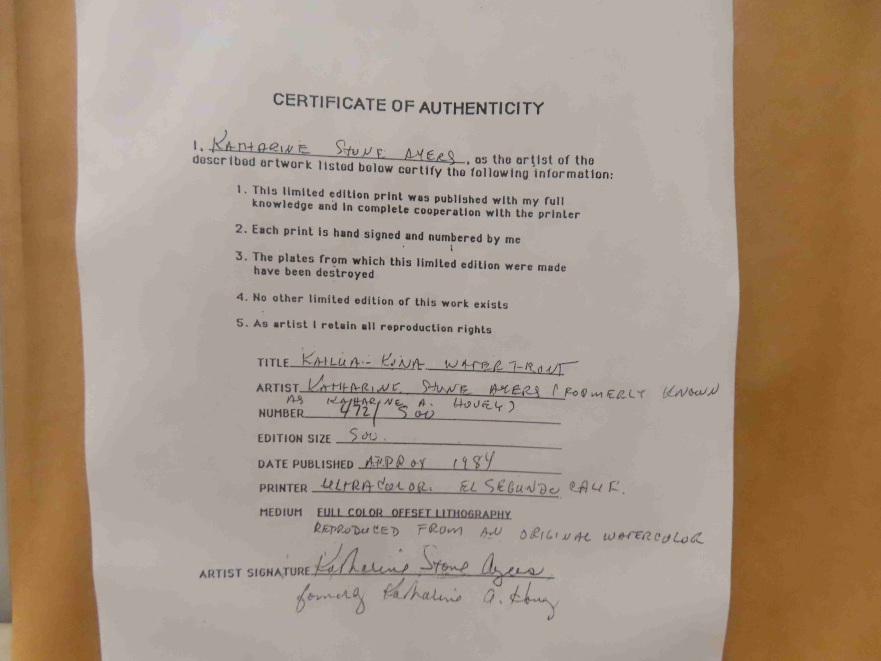 2 Numbered Prints by Katherine Ayers with COA