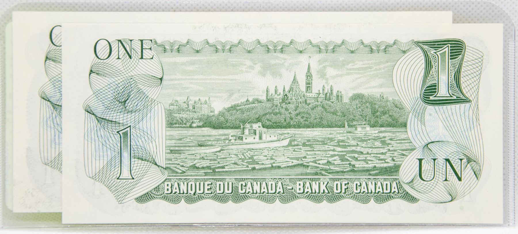 2 OF 1973 CANADIAN $1 BILL - (TWO BILLS)