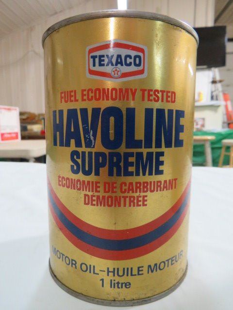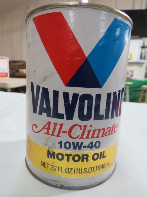 2 OIL TINS 10W40 1 LITER TEXACO HAVOLINE TIN, 1 US QT VALVOLINE ALL CLIMATE CARDBOARD