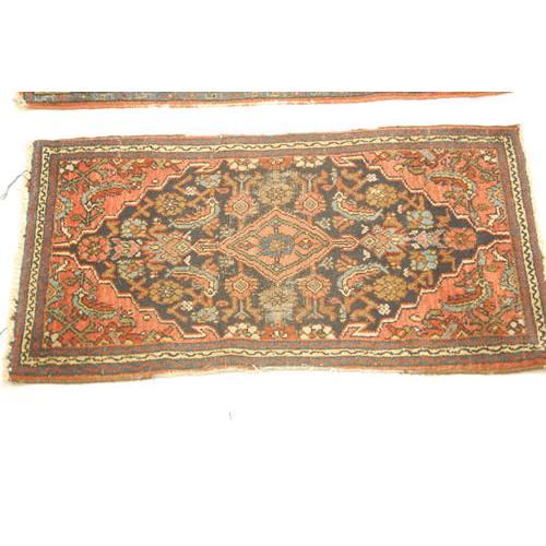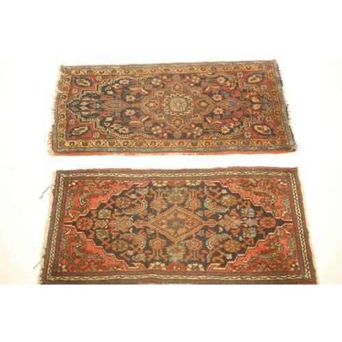 (2) OLD HAMADAN PERSIAN CARPETS - EARLY 20TH CENT. CENTER MEDALLION HAMADAN PERSIAN SCATTER CARPETS W/ FLORAL DESIGNS & COBALT FIELDS: (1) 2 FT. 10" X 2 FT. & (1) 2 FT. 9" X 1 FT. 10" - WEAR, SOILING, IMPERFECTIONS