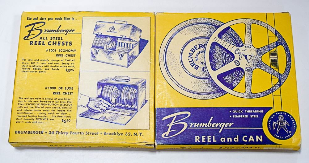 2 OLD STOCK FILM REEL & CAN BRUMBERGER USA