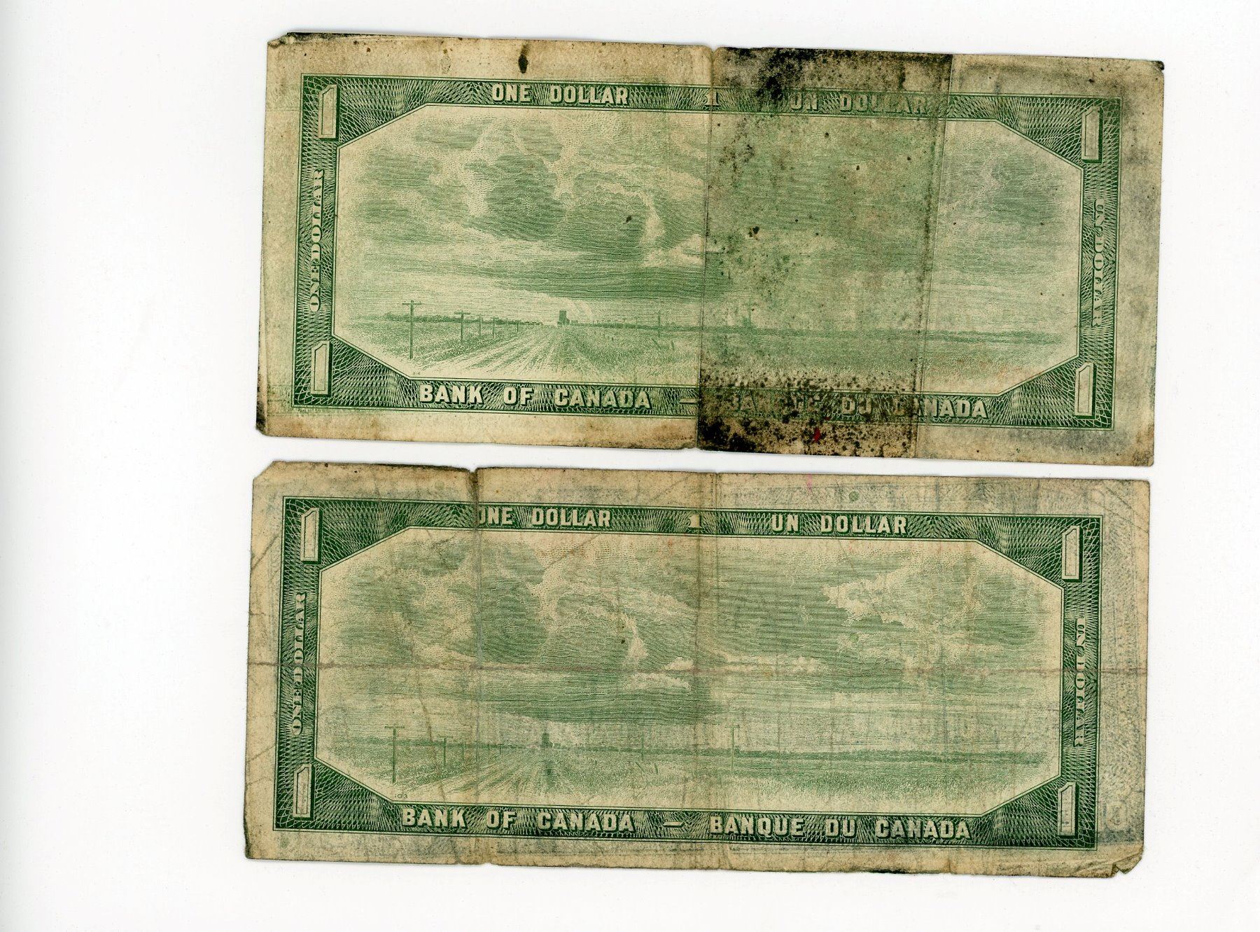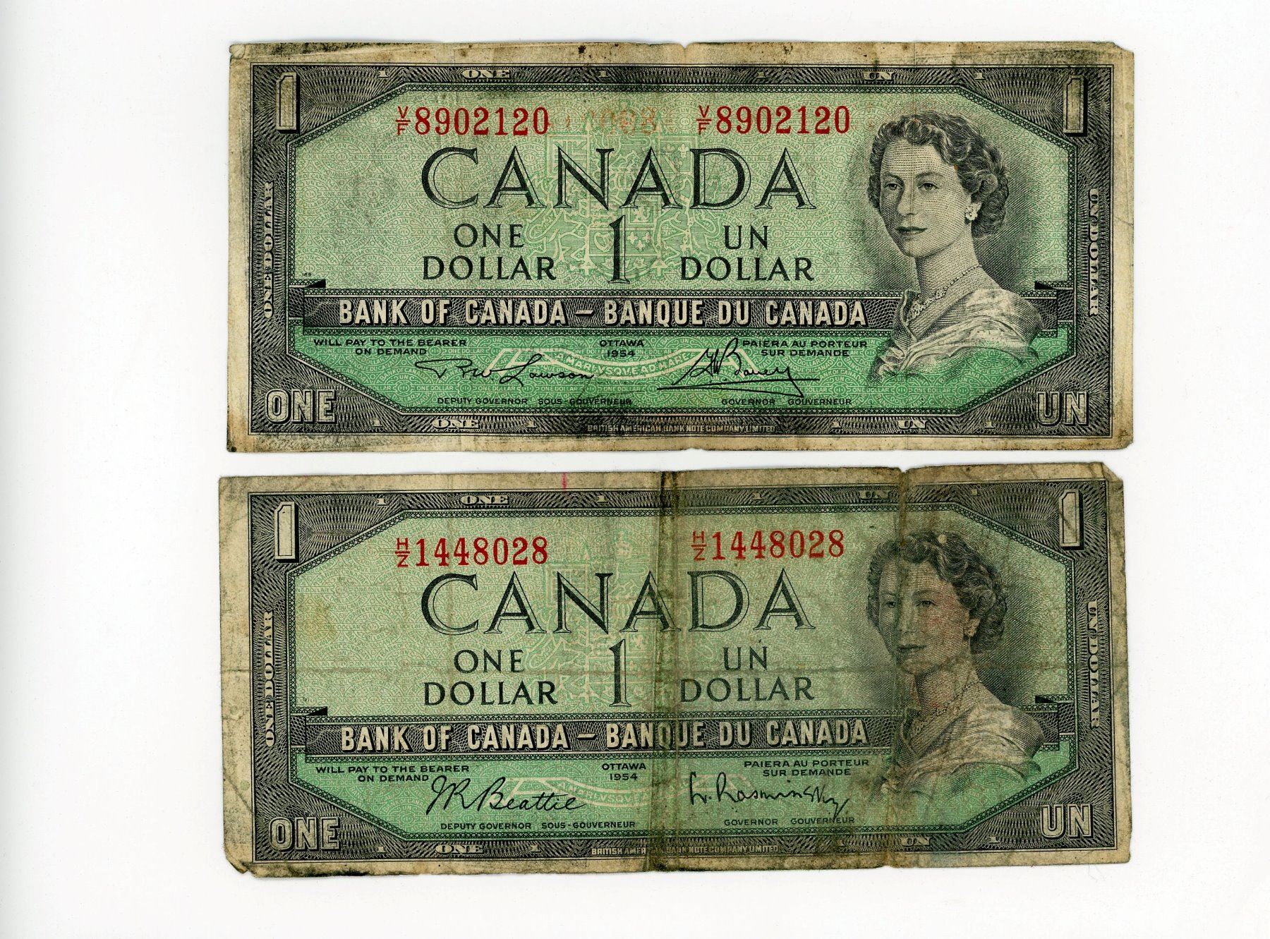2-ONE DOLLAR BILLS (CANADA) *1954*
