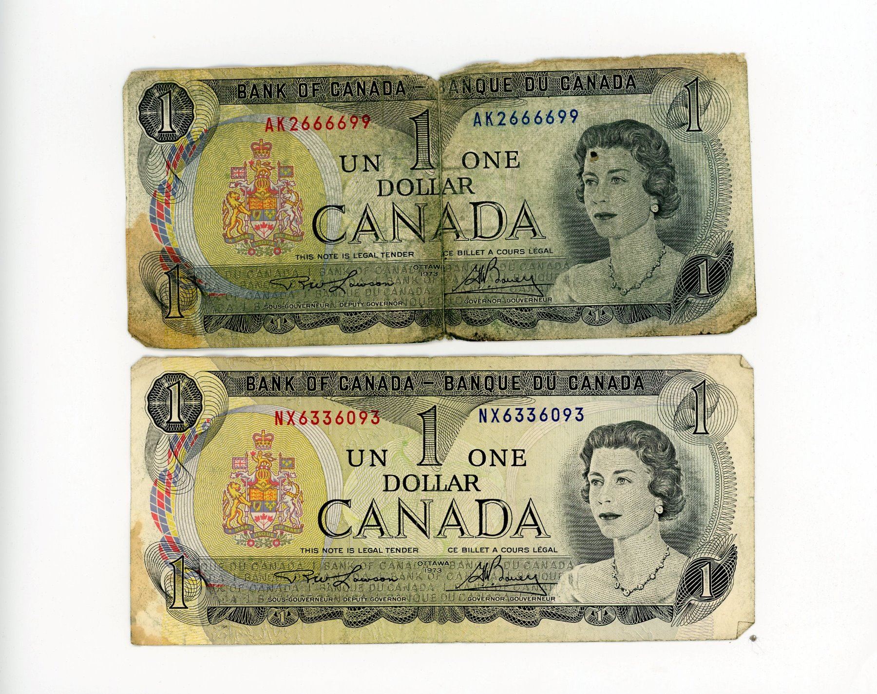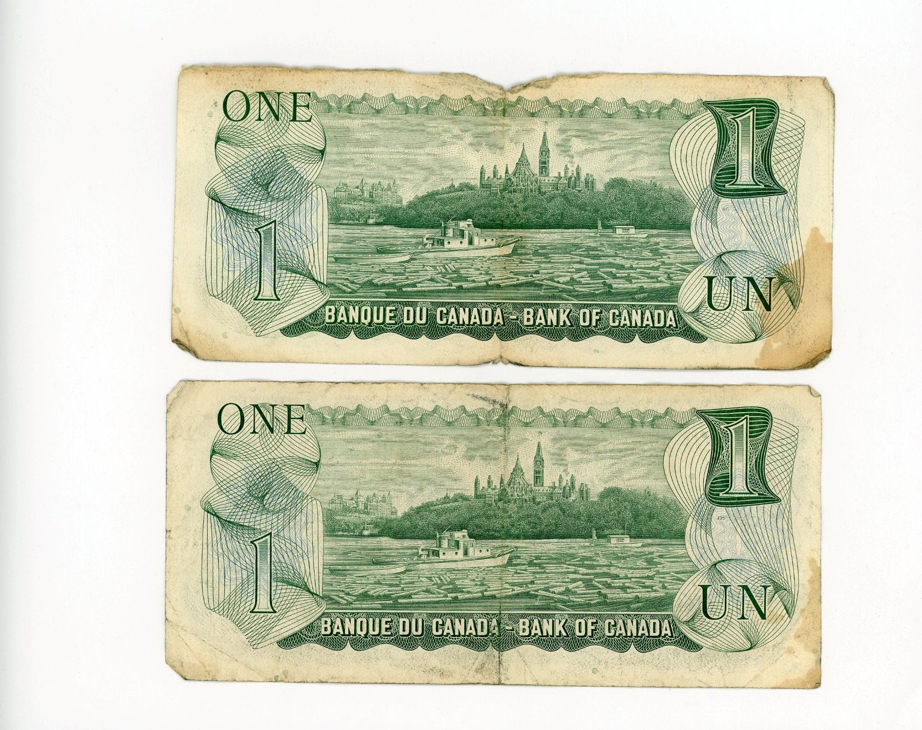 2-ONE DOLLAR BILLS (CANADA) *1973*