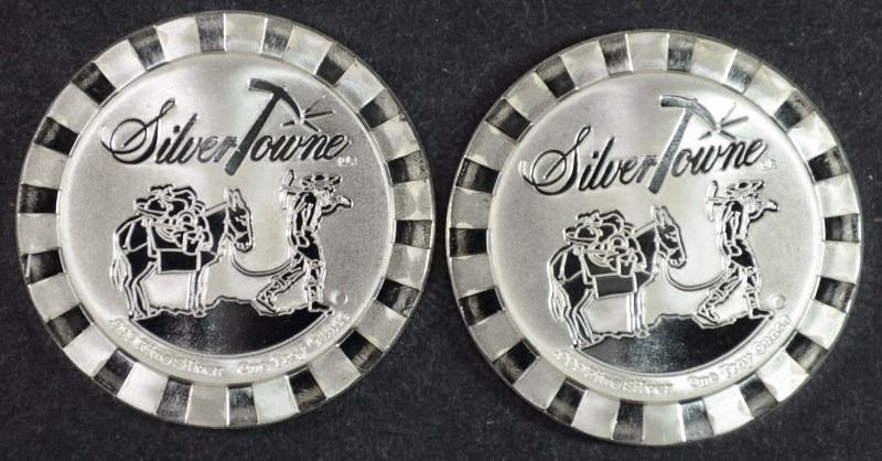 POKER CHIP STYLE STACKABLE SILVER ROUNDS, ESTIMATE, $65.00 TO $70.00