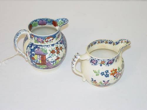 (2) OPAQUE CHINA PITCHERS - BOTH DECORATED W/ ORIENTAL MOTIF (3 1/2" & 4 1/2");