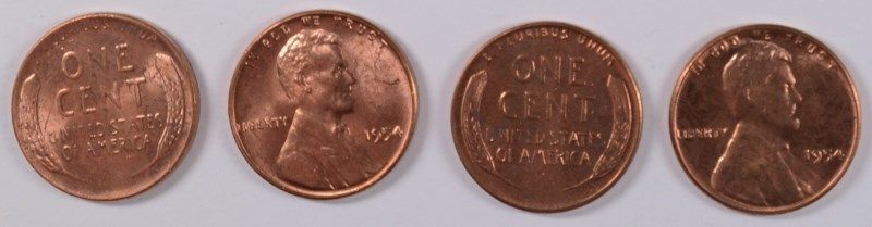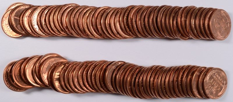 ( 2 ) ORIGINAL ROLLS OF GEM BU 1954 LINCOLN CENTS, ( 50 ) COINS EACH ROLL